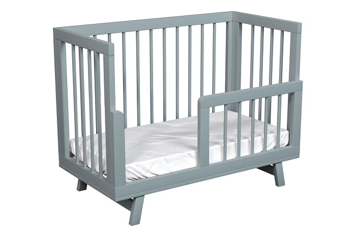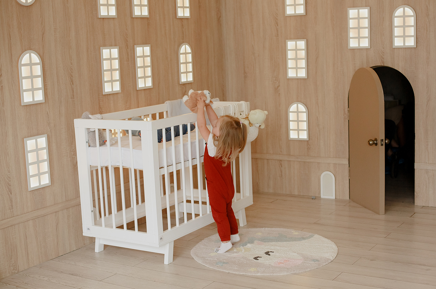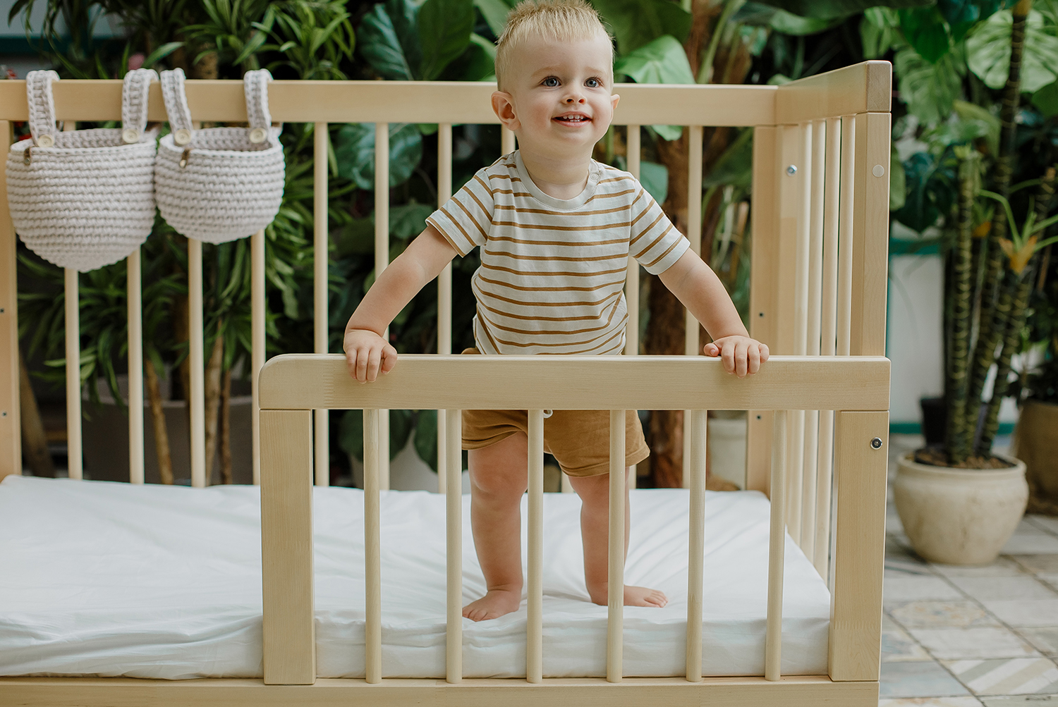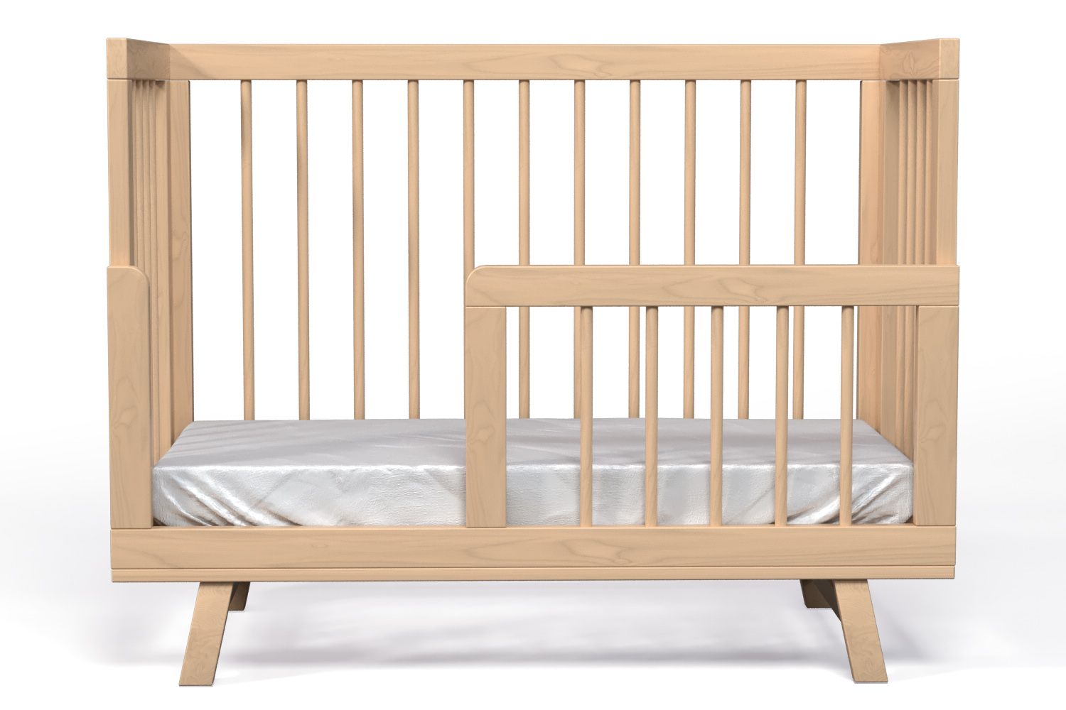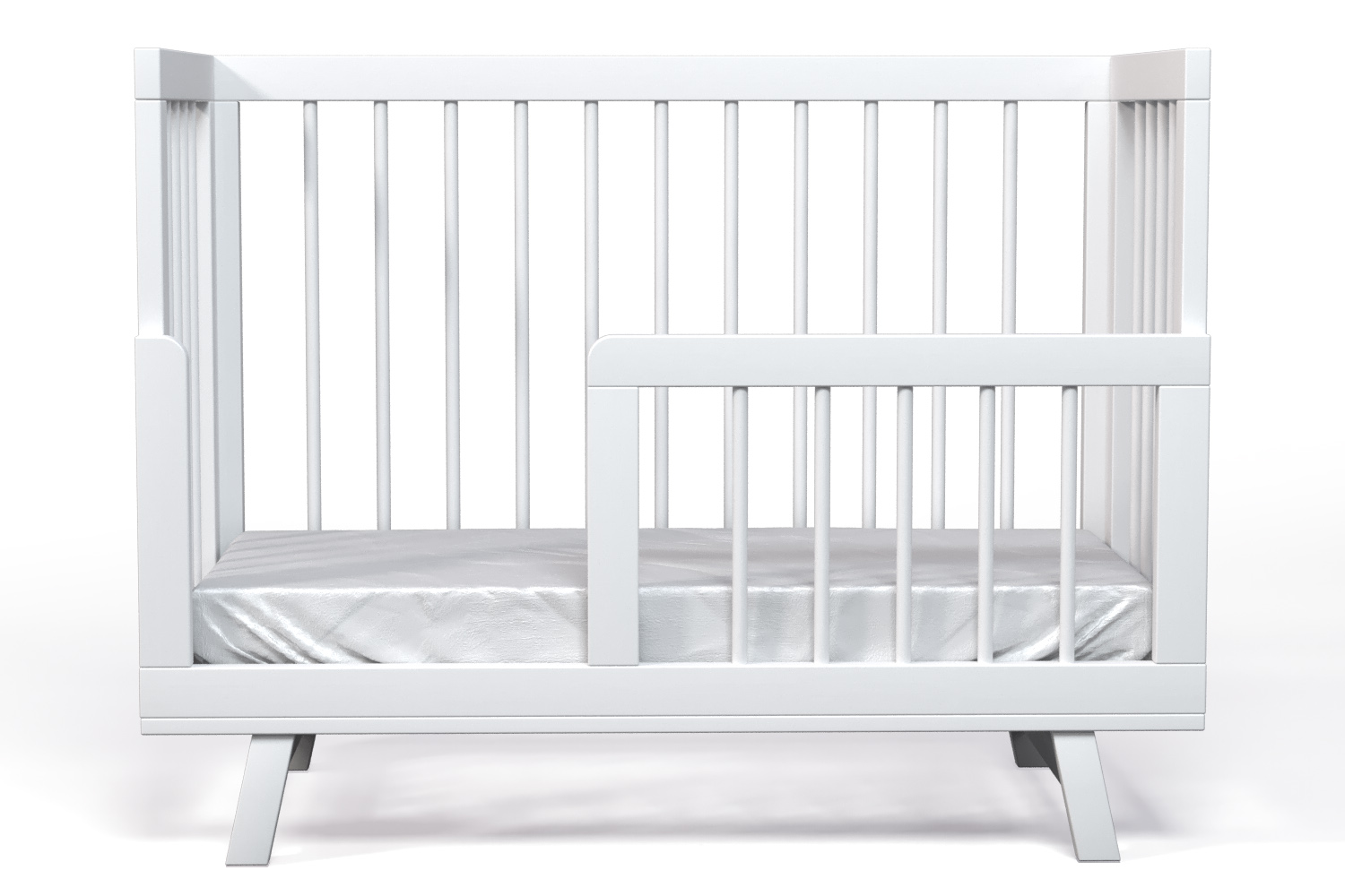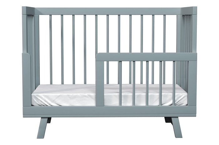 в комплект входит сменный защитный бортик с 2 лет, обеспечивающий свободный доступ в кроватку и безопасный сон подросшего малыша.