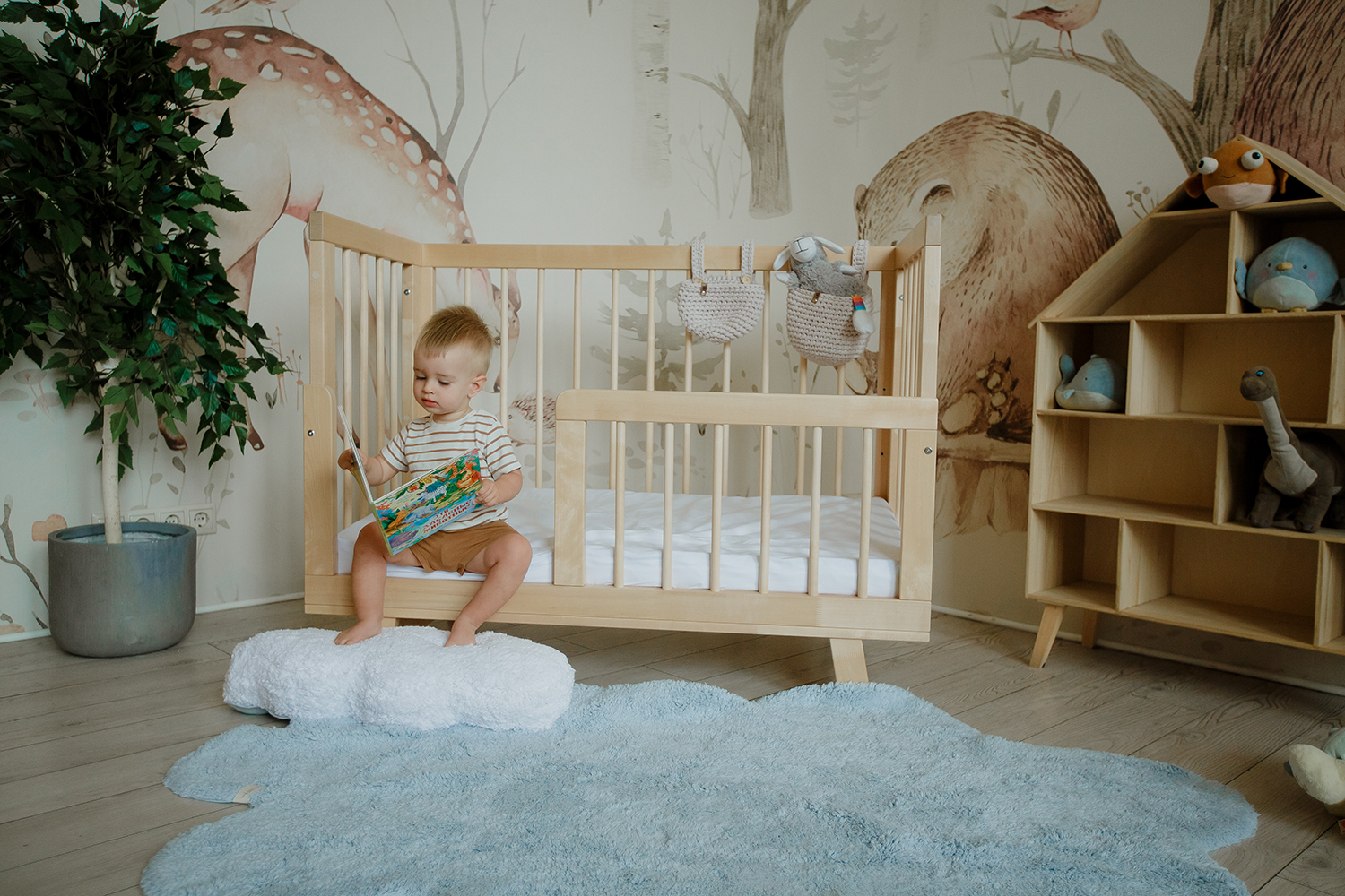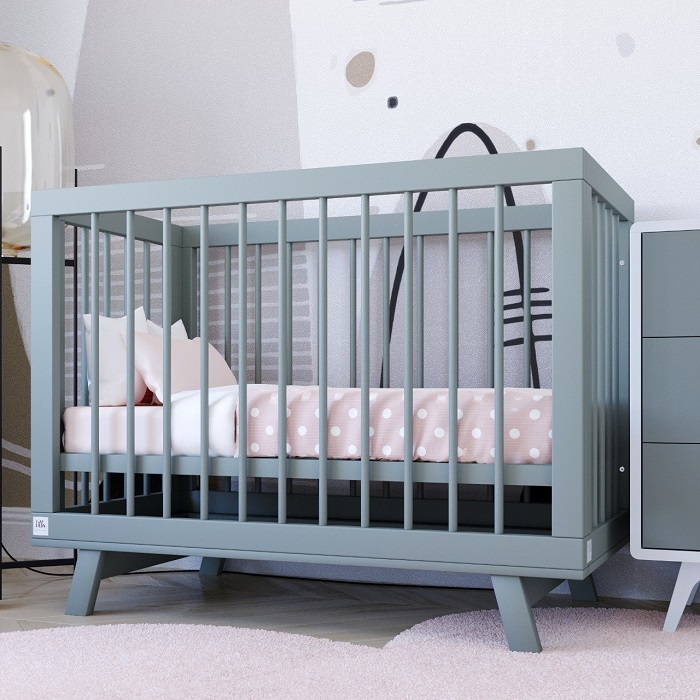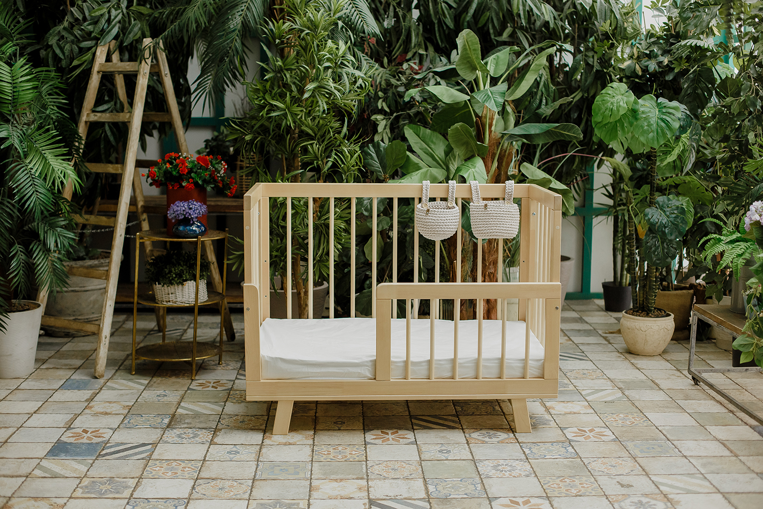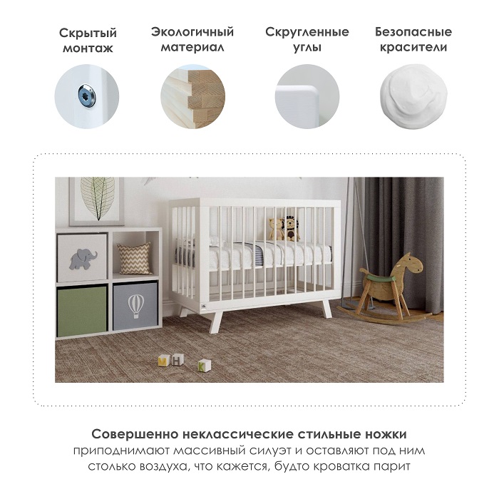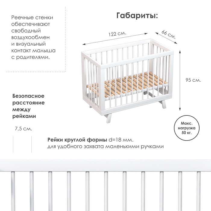 реечные стенки обеспечивают свободный воздухообмен и визуальный контакт малыша с родителями.