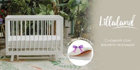 Всем покупателям кроватки Lillaland Lilla ARIA мы дарим матрас 120х60см Dreamtex (толщина 10 см, наполнитель - латекс/кокос).