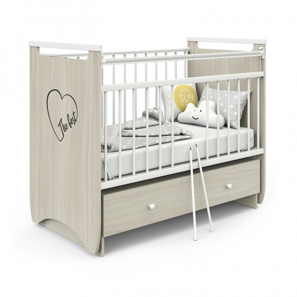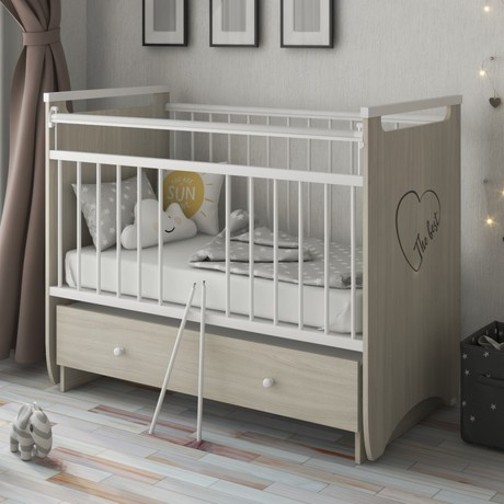 Кровать MALIKA GERDA (Малика Герда) с маятником и ящиком - современная кроватка для ребенка с рождения до 3-4 лет, выполненная в немецком стиле. особенностью модели является сочетание высокого качества, изящного дизайна и небольшой цены. В кроватке предусмотрено все необходимое, чтобы ребенку было удобно и безопасно, а родителям удобно. Передняя планка поднимается и опускается для безопасности малыша. Спальное ложе регулируется по высоте в 3-х положениях. Поперечный маятниковый механизм позволит покачивать кроватку из стороны в сторону, плавно укачивая ребенка, а при необходимости маятник надежно фиксируется. Вместительный ящик поможет удобно поместить вещи и постельное белье для малыша. Когда ребенок подрастет и захочет сам залазить и вылазить с кроватки несколько ламелей легко снимаются, не портя кроватку. Накладки ПВХ на бортиках защитят детские зубки от соприкосновения с деревом во время прорезывания зубков.