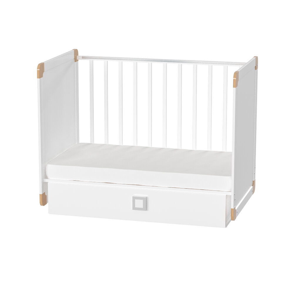 Кровать Malika GRETTA (Малика гретта) - стильная кровать для ребенка с 0-3 лет. Оригинальный дизайн кроватки прекрасно дополнит интерьер деткой комнаты. Кровать очень функциональная и имеет все, что необходимо для качественного и безопасного сна ребенка. Данная модель укомплектована закрытым ящиком с оригинальной ручкой производства Германия. Поперечный маятник поможет укачать и подготовить ребенка ко сну. При необходимости он легко фиксируется стопором.