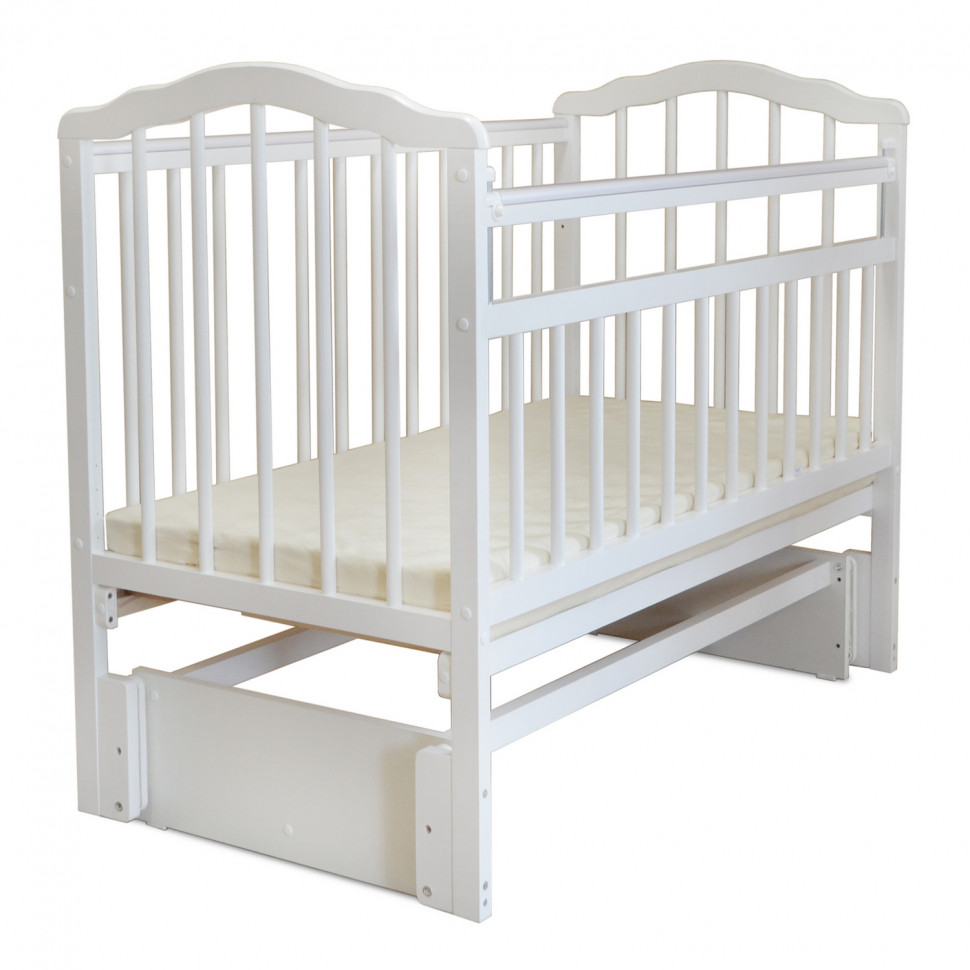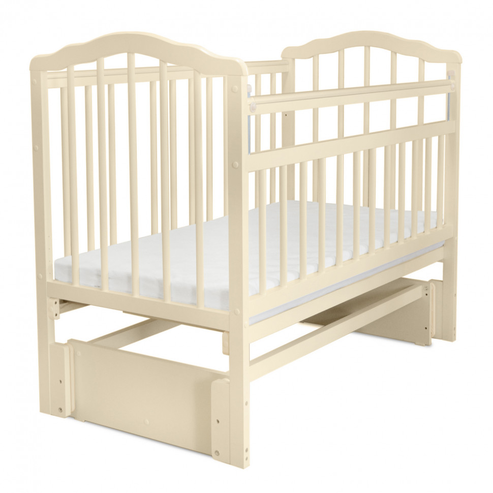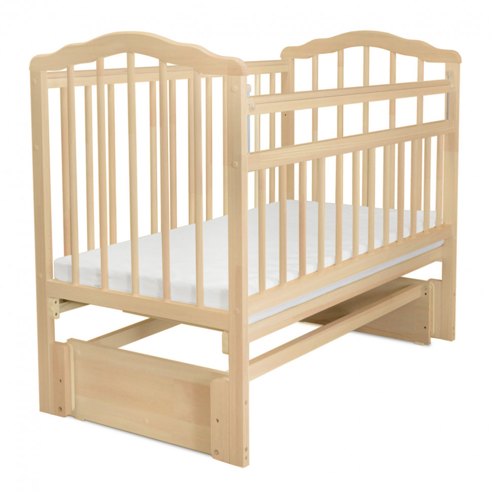 Malika Melisa-5 (Малика Мелиса-5) - детская кровать из массива березы с универсальным маятником. Кроватка выполнена с учетом действующих ГОСТов из экологически чистого материала. Она прочная, долговечная и оснащена всеми необходимыми функциями, чтобы маме было удобно общаться с малышом, а ребенку было комфортно и безопасно.