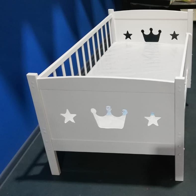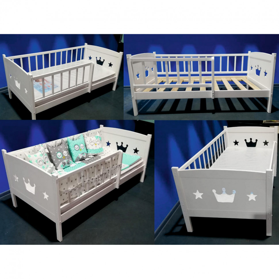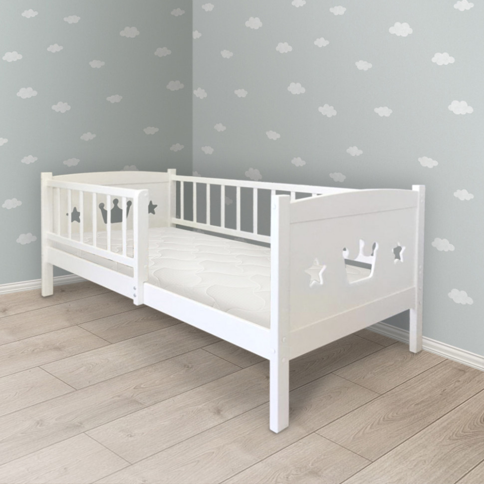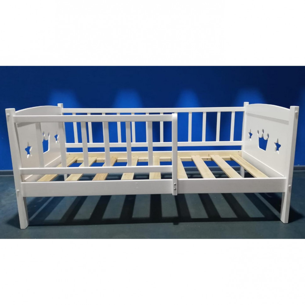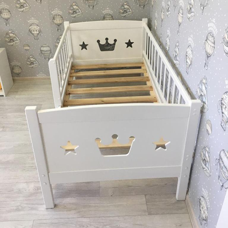 Кровать Malika Royal Star 160х80 (Малика Роял Стар) - очень красивая, качественная и надежная кроватка для ребенка от 2 до примерно 12 лет. Кроватка выполнена из экологически чистой березы. Все перекладины толстого сечения выполнены без использования МДФ. Основание кроватки реечное. Для безопасности ребенка предусмотрен дополнительный бортик , который защитит ребенка от ночных падений. Боковые бортики украшены фигурной резьбой.