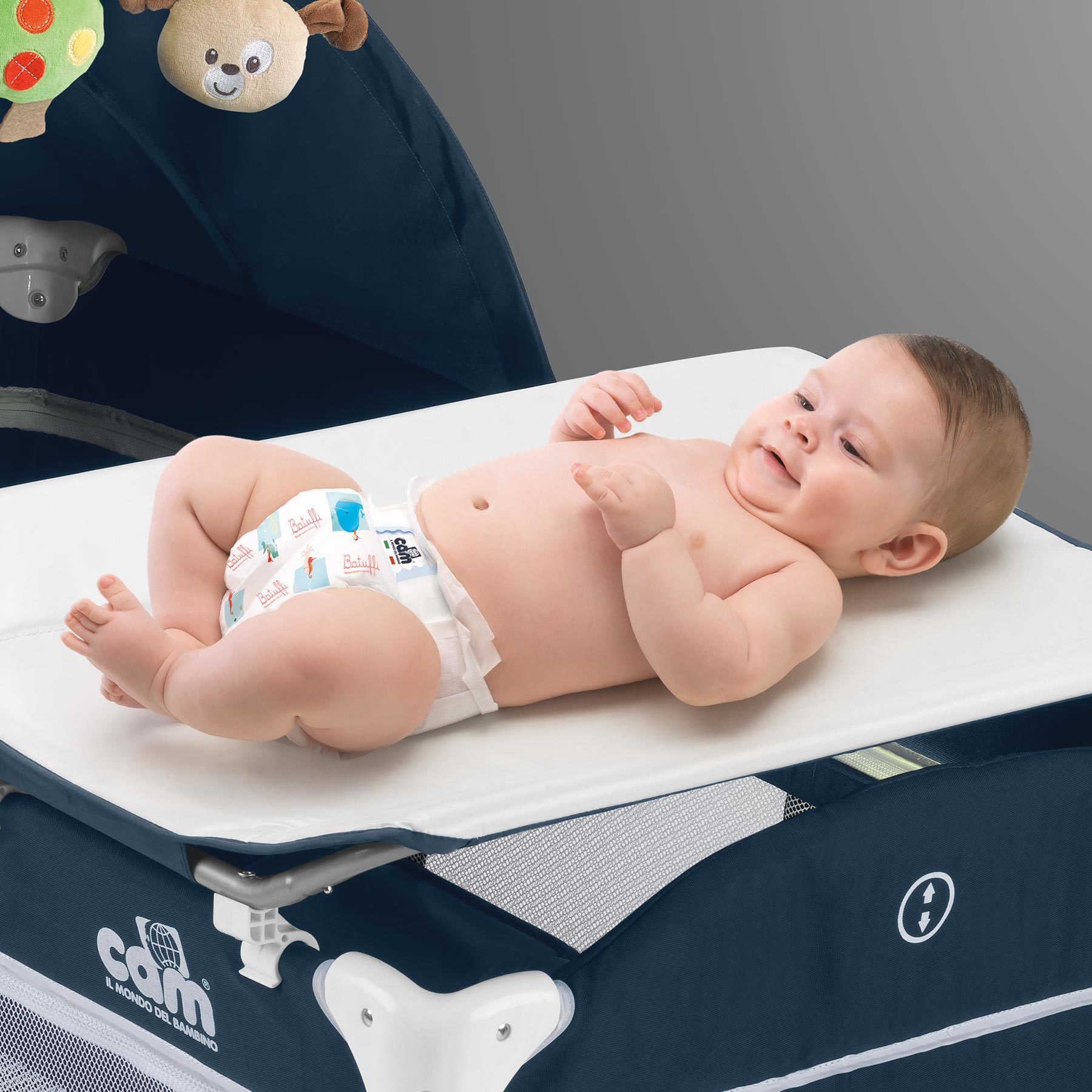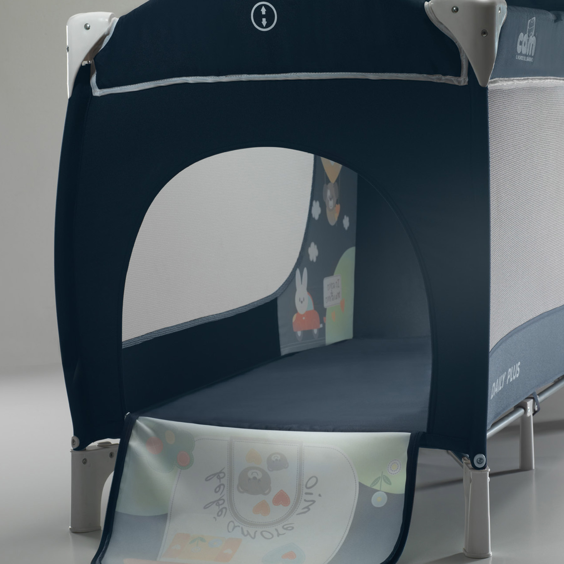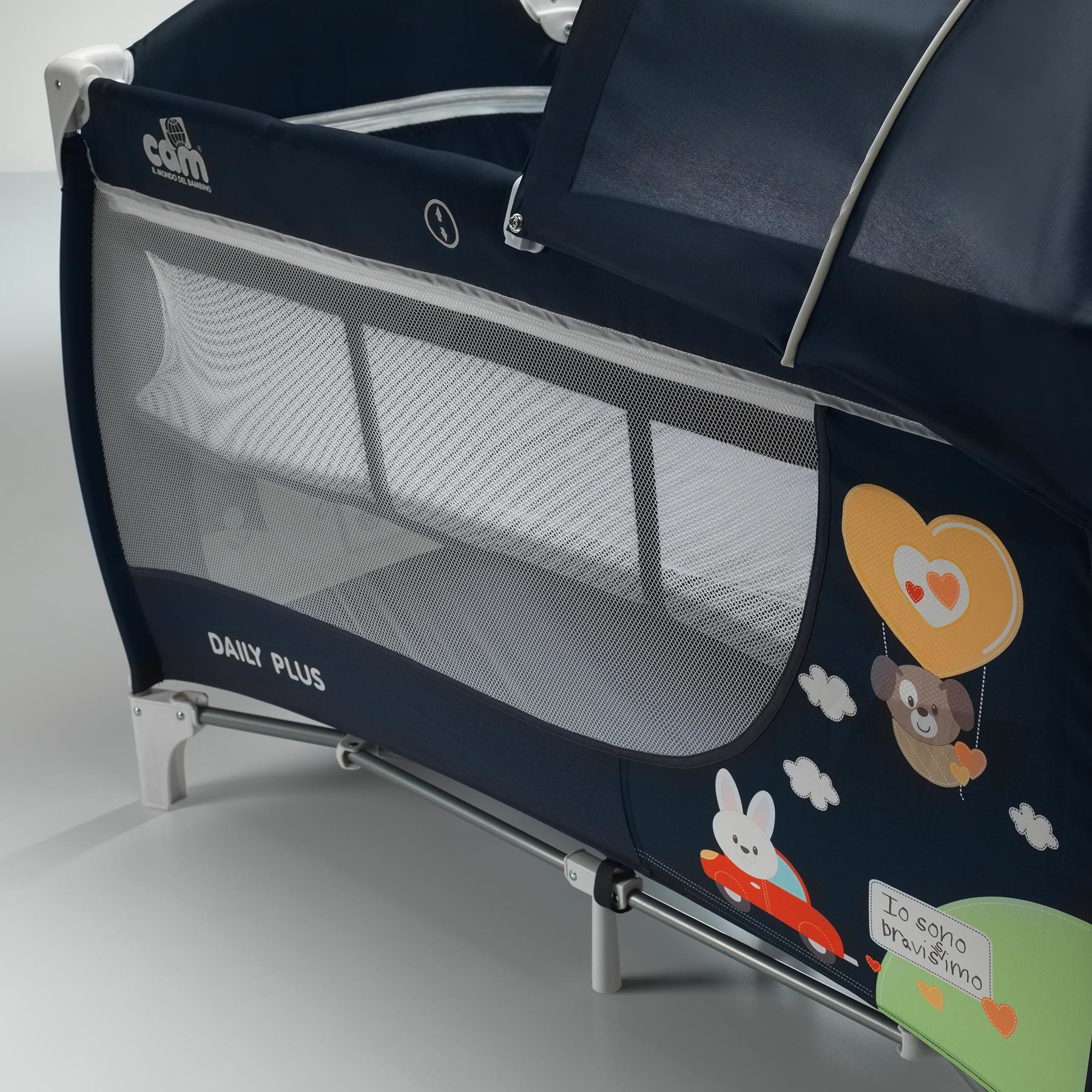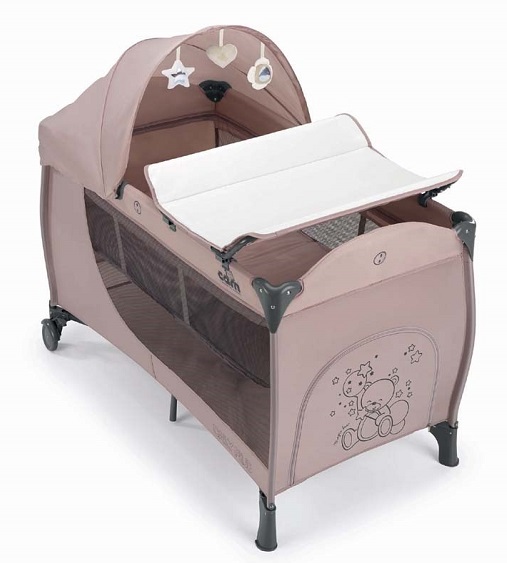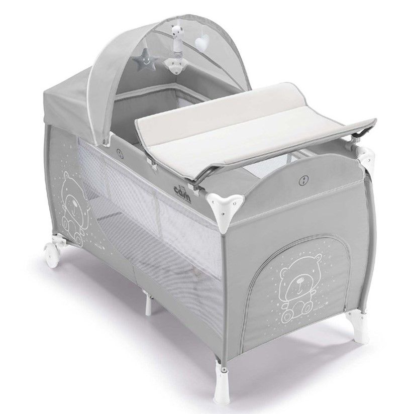 Кровать манеж Cam Daily Plus (кам дейли плюс) - компактная портативная кровать со всеми необходимыми аксессуарами для детей с рождения. В этой модели предусмотрено 2 положения подматрасника по высоте, что позволит родителям удобно класть ребенка в кроватку. Прекрасная вентиляция и хороший обзор для родителей. Для детей примерно до 6 месяцев на кроватке предусмотрен съемный пеленальный столик для удобного переодевания малыша и осуществления всех необходимых гигиенический процедур. С одной стороны манежа расположен вместительный карман для самых нужных вещей. За счет небольшого веса и компактных размеров в сложенном виде кроватку удобно брать на природу, отдых, путешествие или при частых переездах. Козырек поможет создать дополнительный уют для сна ребенка. Так же предусмотрен игровой модуль с креплением на капюшон.