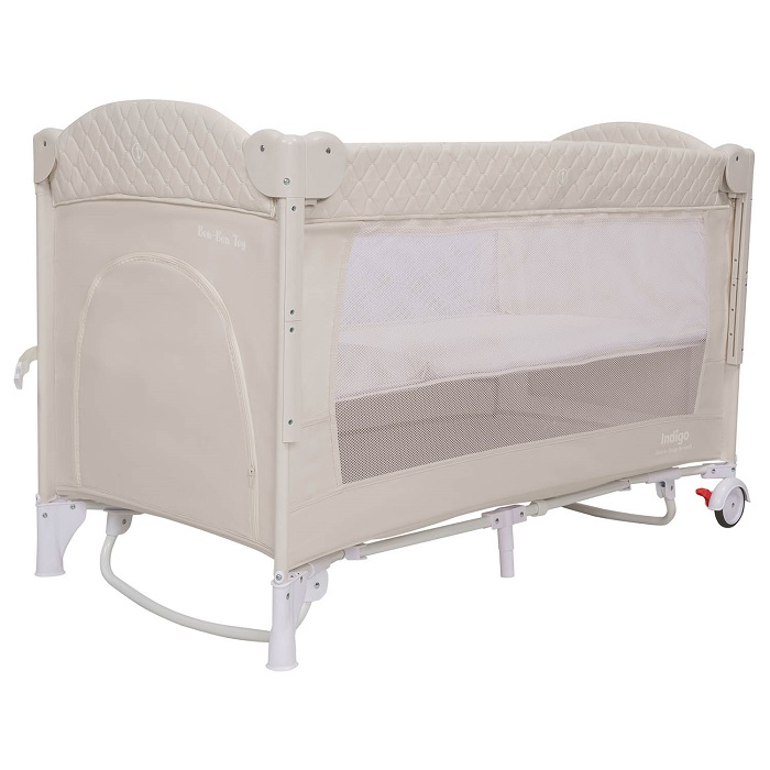 Кровать-манеж Indigo BON-BON c маятником (индиго бон бон) - уникальная по своему функционалу кровать манеж с маятником, опускающимся бортиком и игровой дугой. Эта кроватка сочетает в себе все функции полноценной кровати для новорожденного, при этом легкая, компактная, легко переносная. С этой кроваткой можно смело отправиться в гости, взять в путешествие.