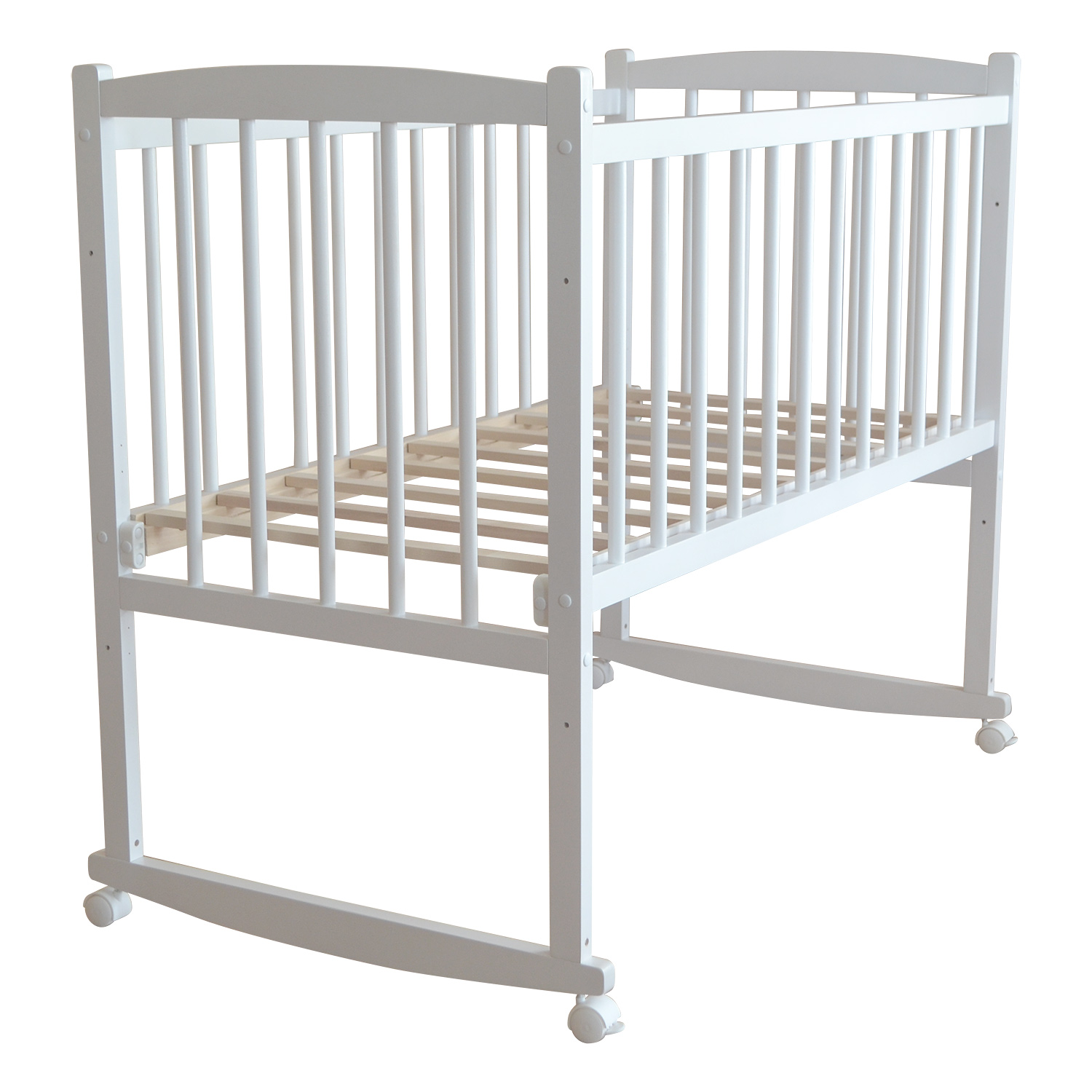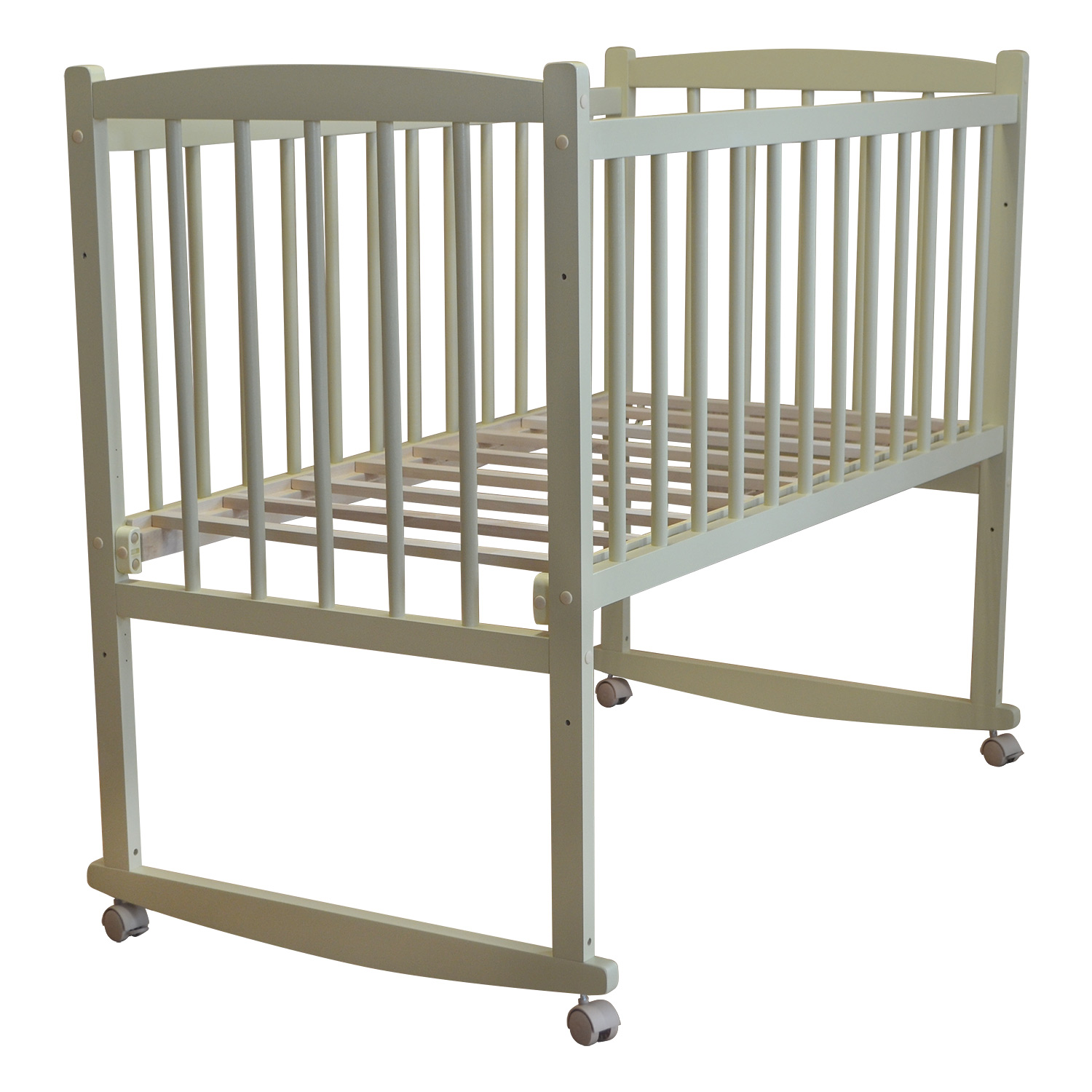 Кровать Массив БЕБИ-1 (колесо-качалка) - простая детская кроватка из массива березы может использоваться и как качалка, и устанавливаться на колеса для удобства передвижения по квартире. Минимальный набор функций кроватки полностью оправдан ее невысокой ценой и доступностью, при этом качество древесины и ее обработка – одни из лучших в данном ценовом сегменте.