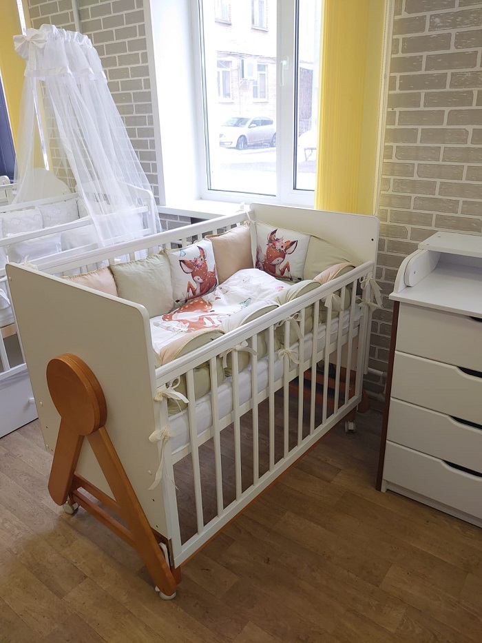 Все материалы кроватки абсолютно безопасные для ребенка. В кроватке отсутствуют острые углы.