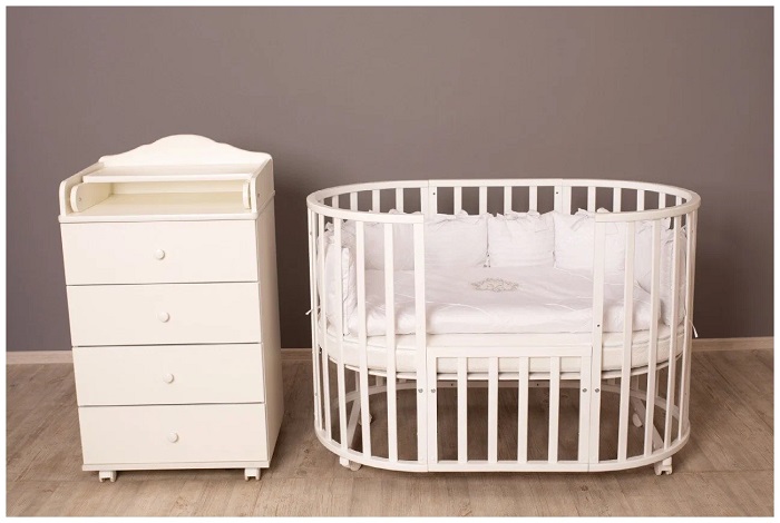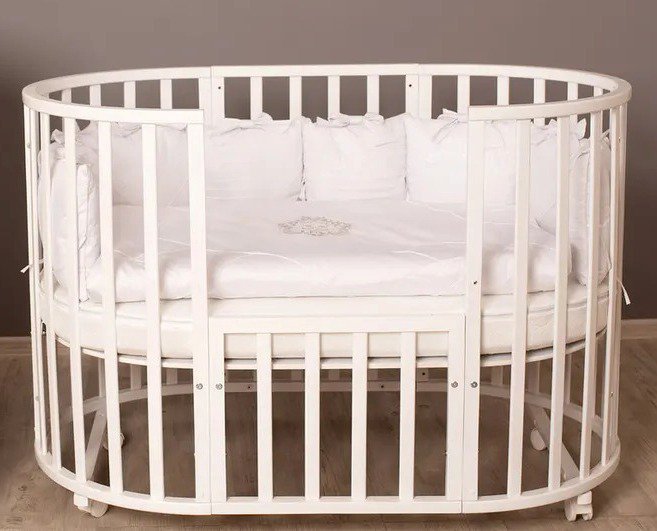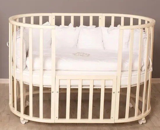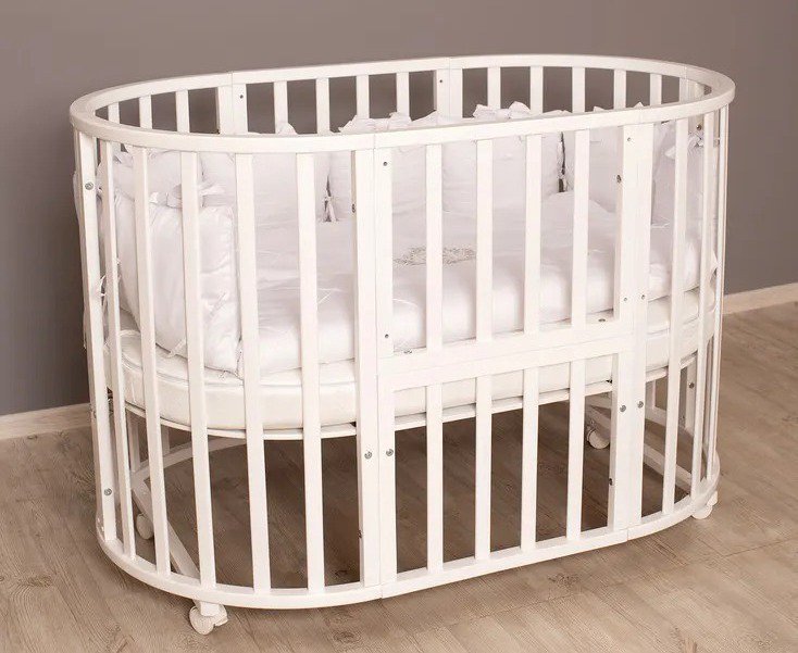 - Овальная кроватка на колесах 75*125 см