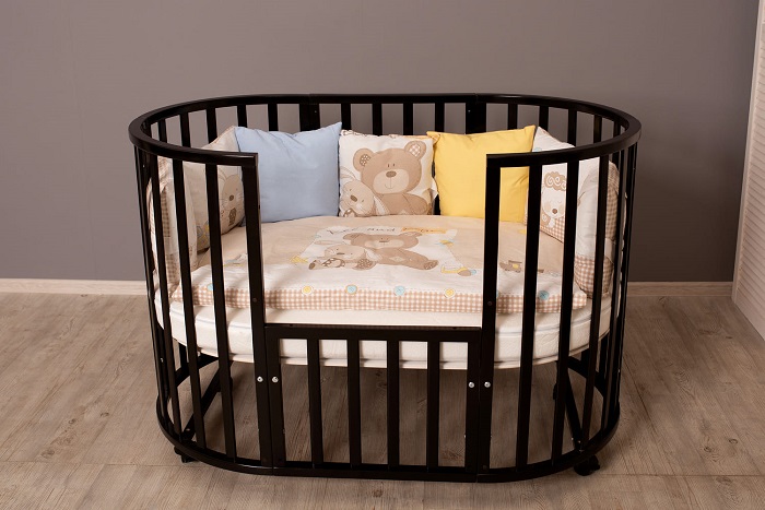 - Овальная кроватка на колесах 75*125 см