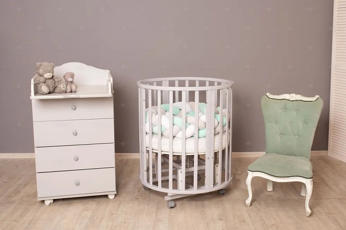 - Круглая кроватка на колесах 75*75 см