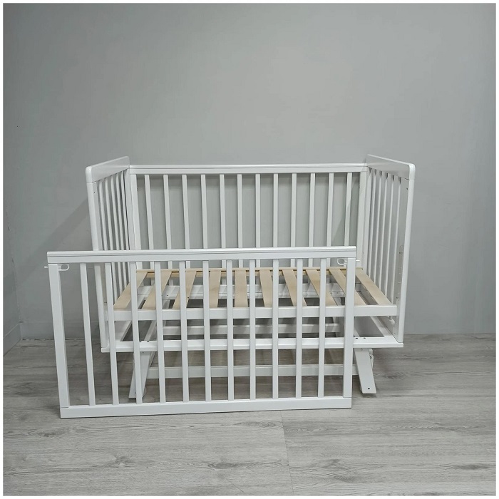Кровать Mika VIKI (Мика вики) - красивая качественная кроватка для ребенка с рождения до 3 лет. Ее преимущество в быстросъемном и регулируемом бортике. Кроватку можно использовать как кровать с 3 положениями спального ложа по высоте, приставную кровать, диванчик для подросшего ребенка. Минималистический стиль кроватки прекрасно подойдет для любой детской комнаты. Качественные материалы и отличная обработка дерева позволят пользоваться кроваткой длительный период времени и обеспечить ребенку безопасность и комфорт.