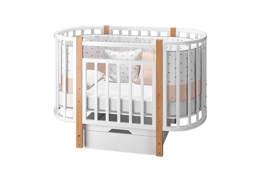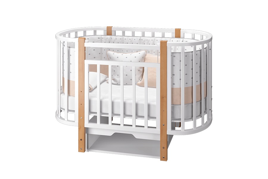 Дополнительно в данной комплектации есть небольшой ящик для спальных вещей ребенка. Так же предусмотрен маятник для плавного покачивания ребенка.