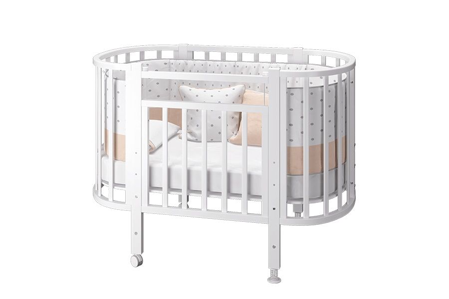 Кроватка выполнена из массива березы. Качественная, надежная и удобная в эксплуатации.