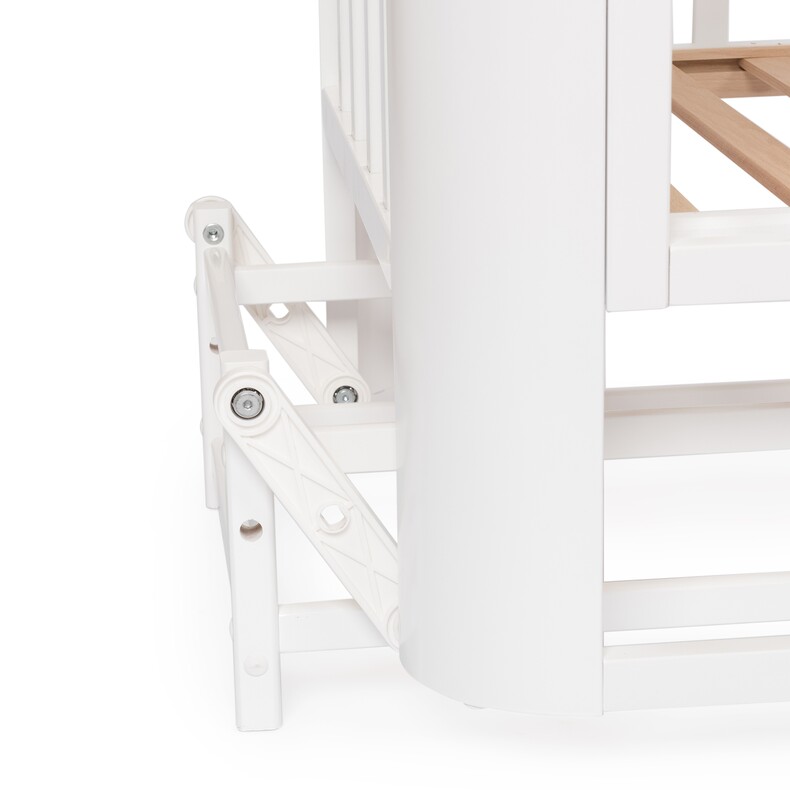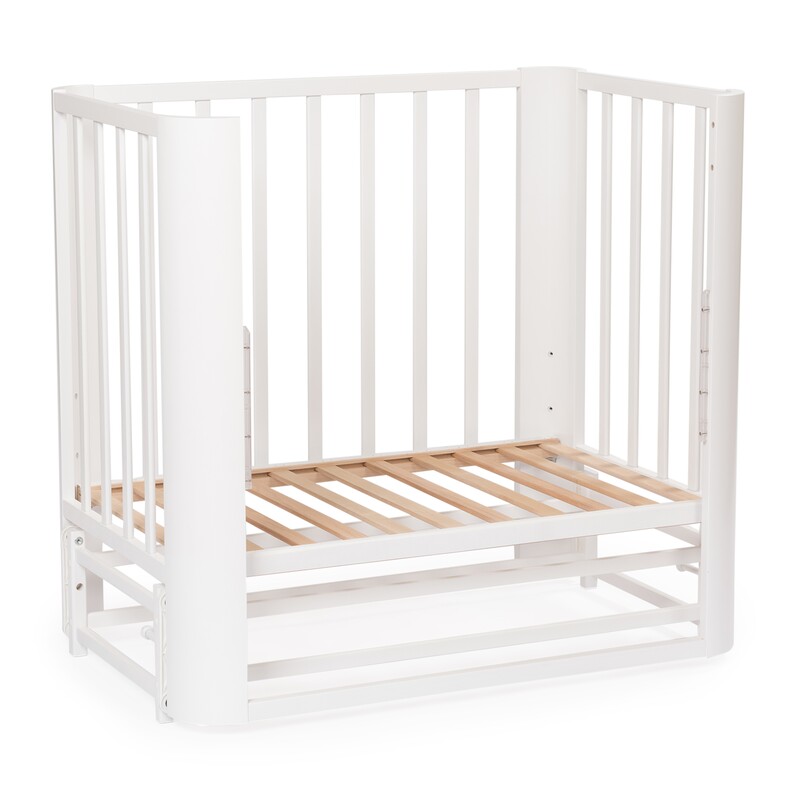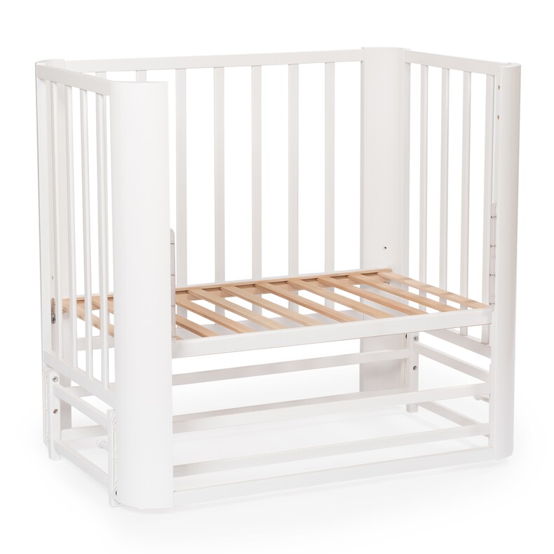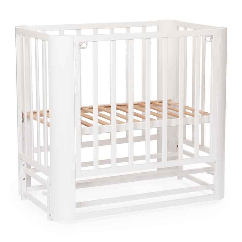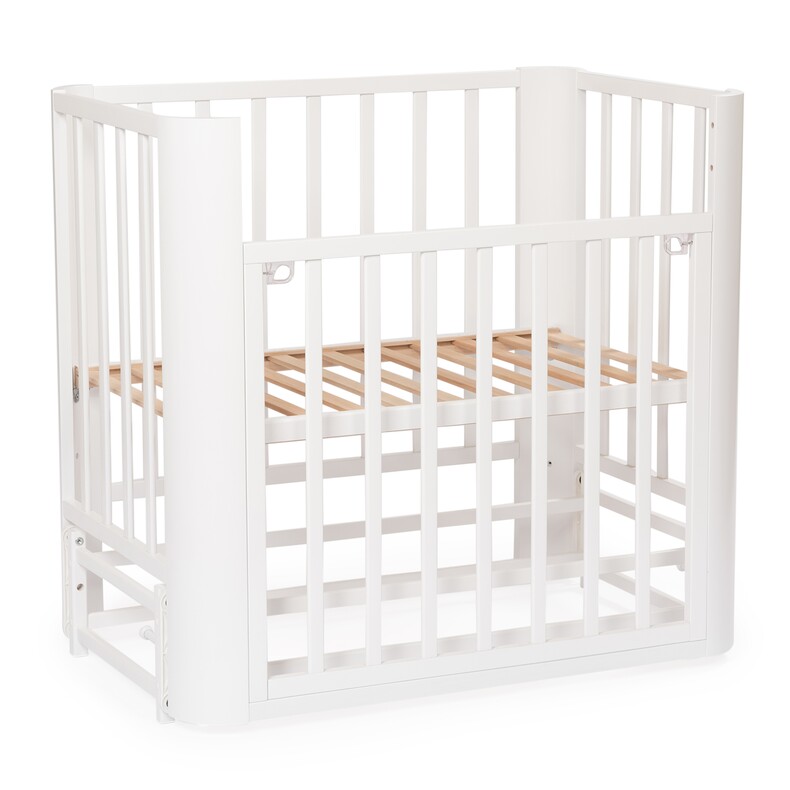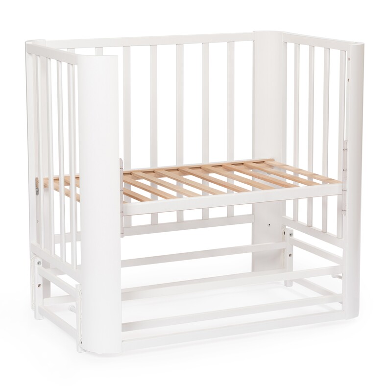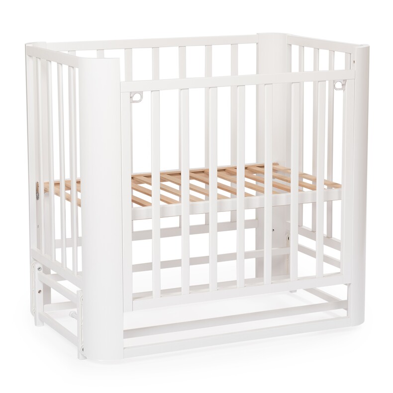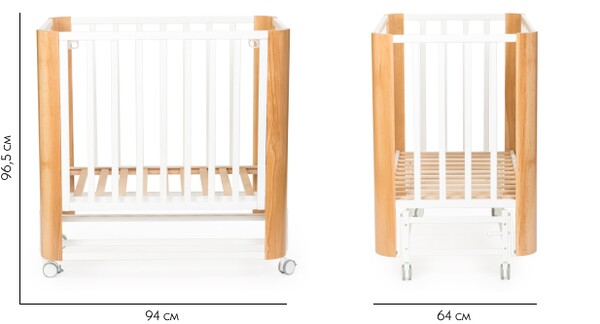 Небольшие размеры кровати позволят удобно разместить кровать даже в ограниченном пространстве. За счет колесиков кроватку легко передвинуть при необходимости.