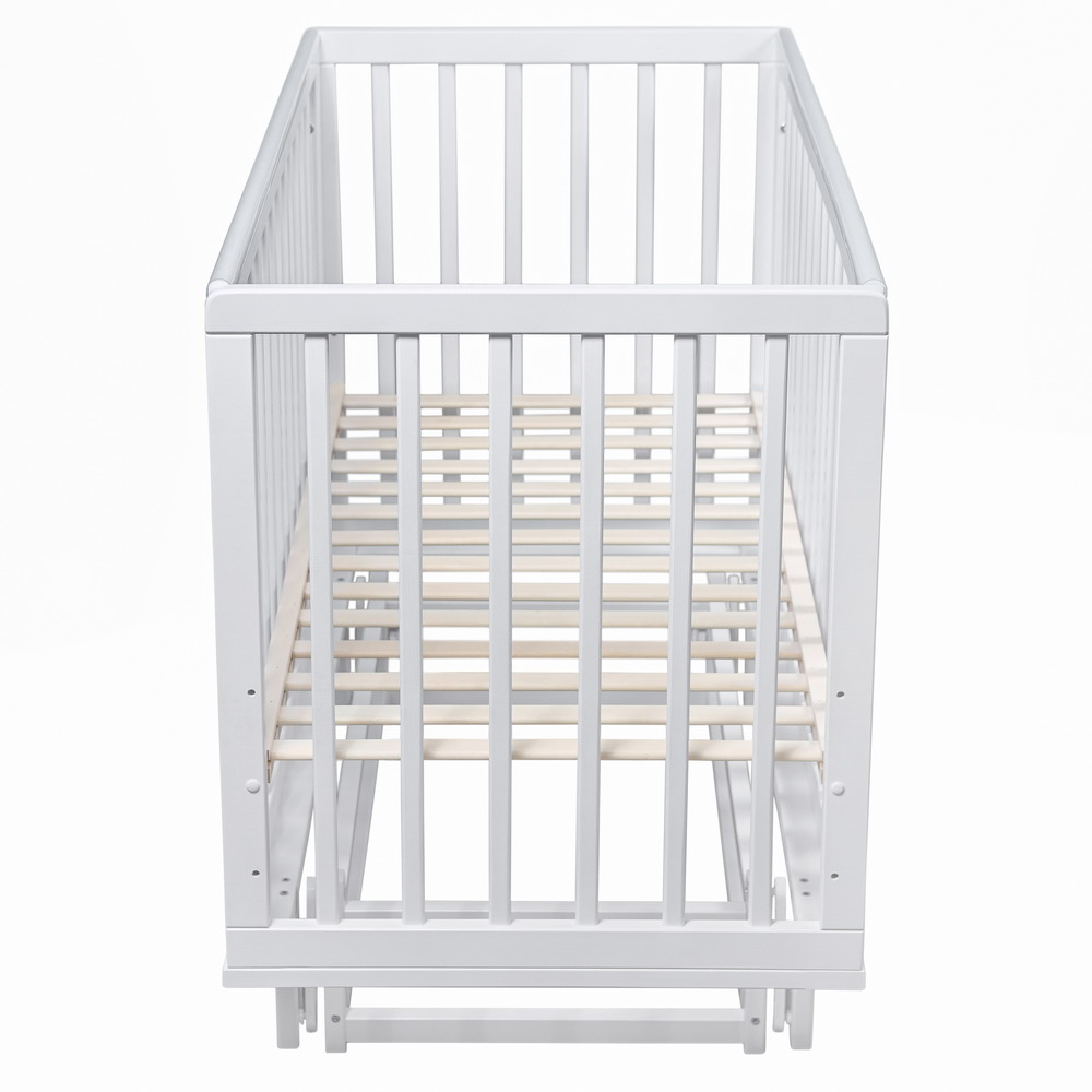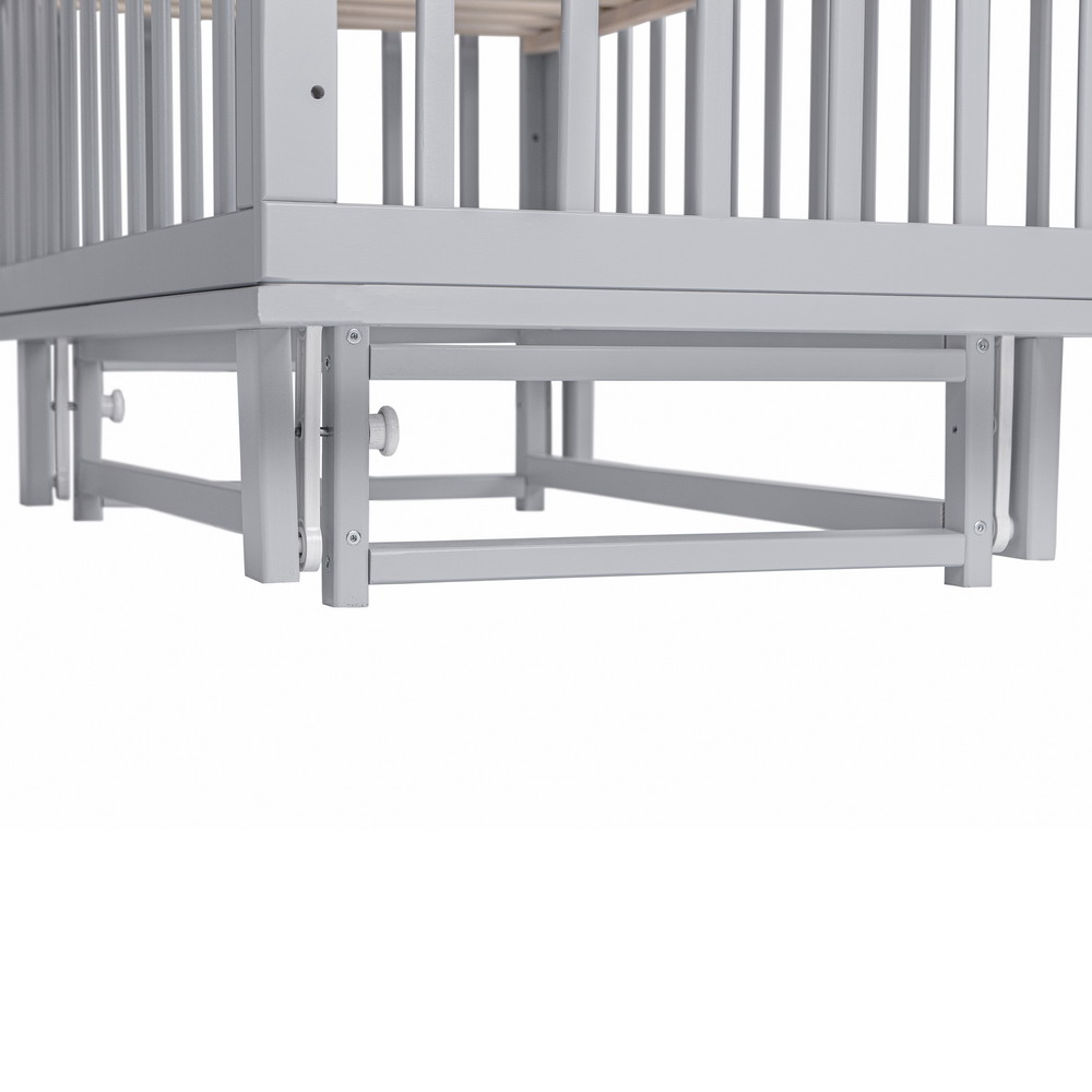 Кровать оснащена мягким бесшумным маятником с продольным качанием. Маятник поможет укачать ребенка, успокоить, настроить на сон. Во время бодрствования маятник фиксируется.