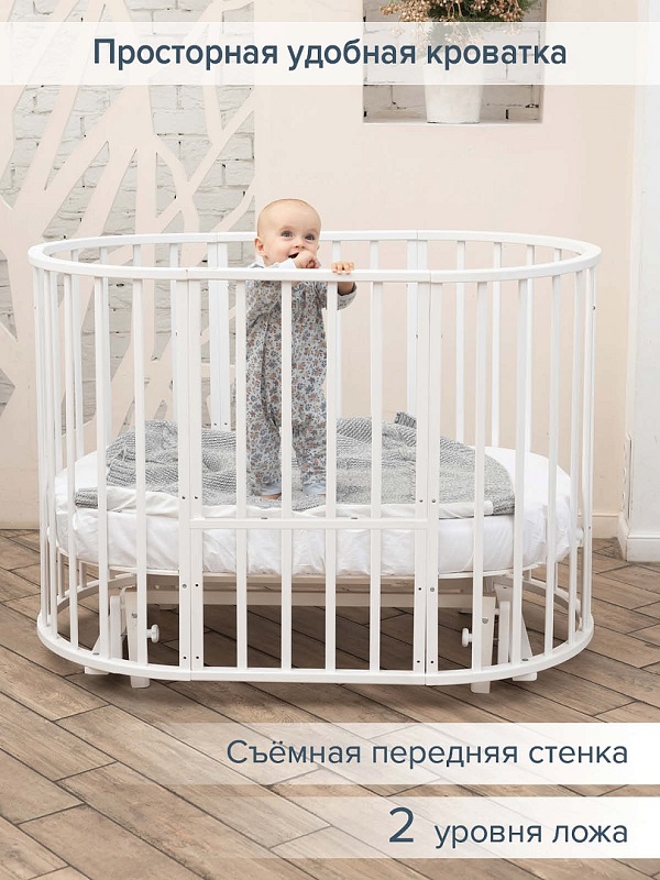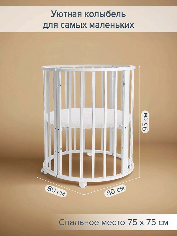 - Размер в собранном виде круглой кроватки: 80*80*95 см.