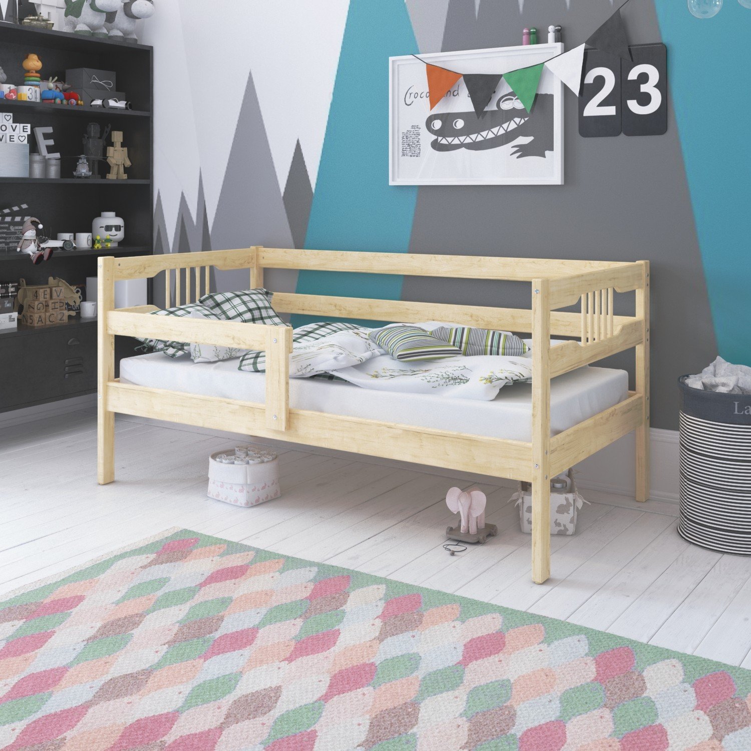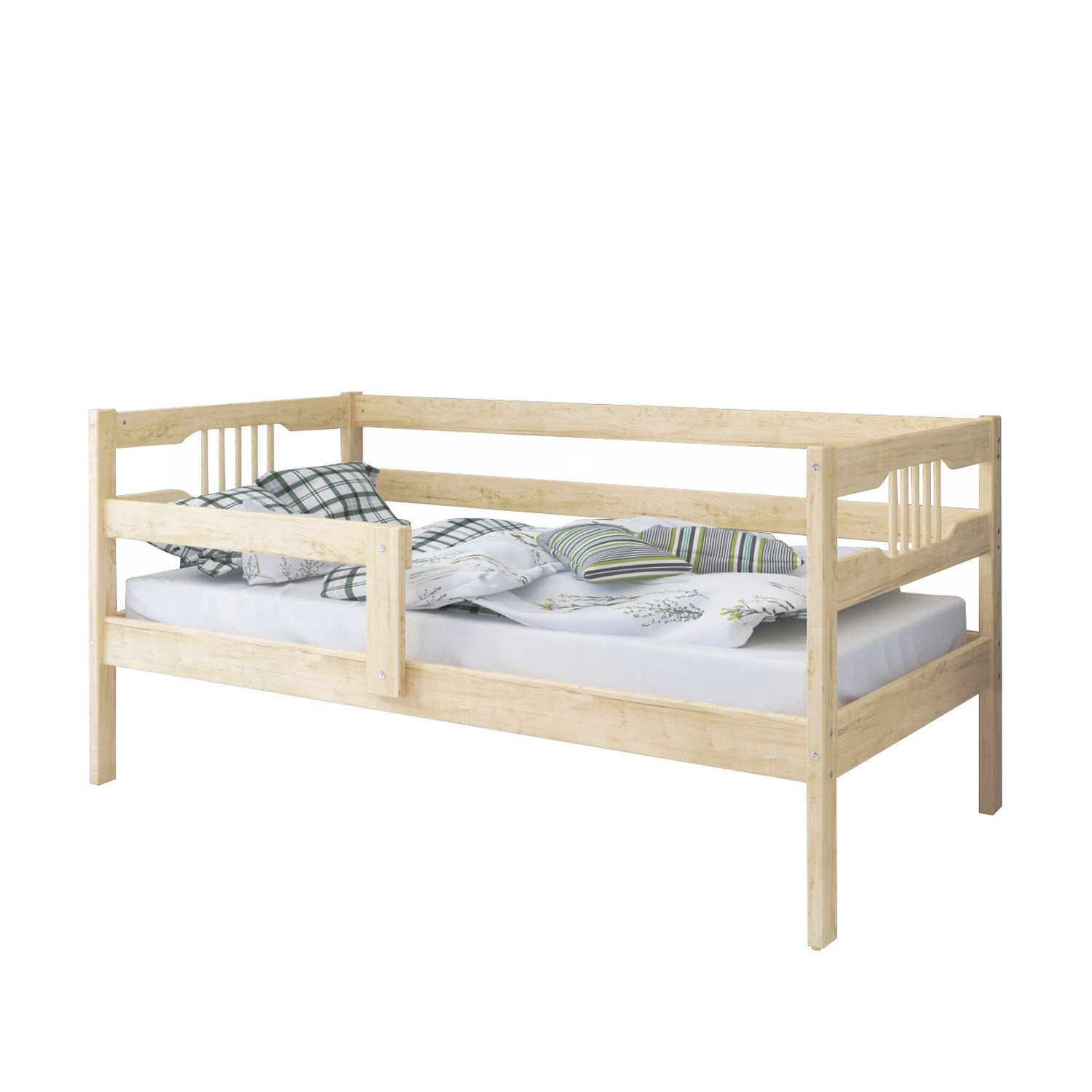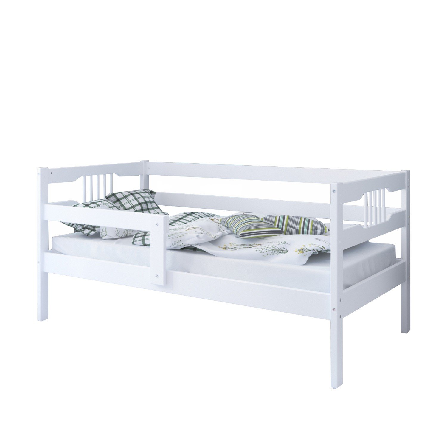 Кровать Malika FREYA (Малика Фрея) - красивая, качественная кровать для ребенка от 3 лет. Модель выполнена в европейском стиле из качественных натуральных материалов. Для безопасности ребенка предусмотрен тренировочный бортик, который можно установить с любой стороны. Он поможет ребенку научится спать на взрослой кровати и не падать ночью. Реечное дно является идеальной опорой практически для любого матраса.
