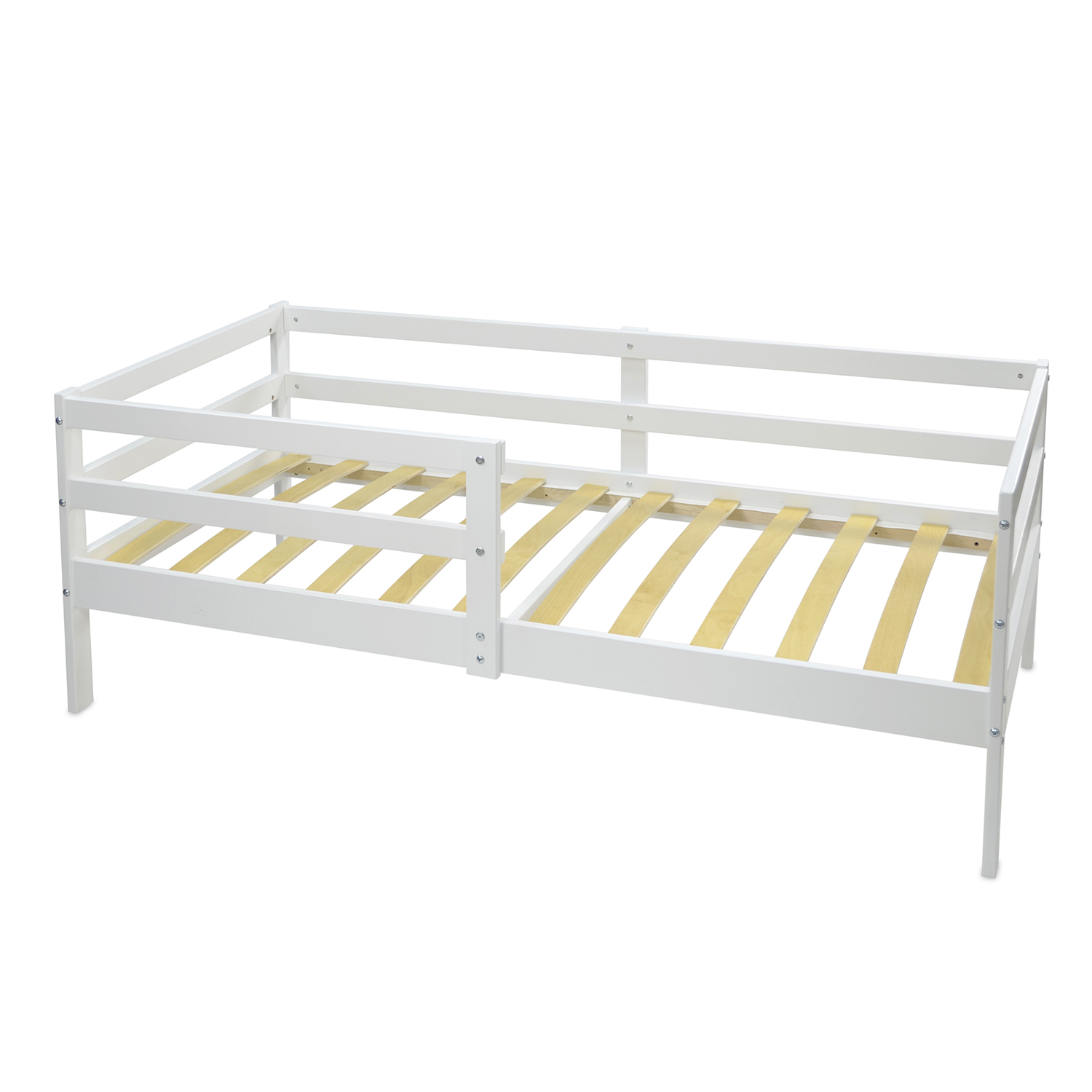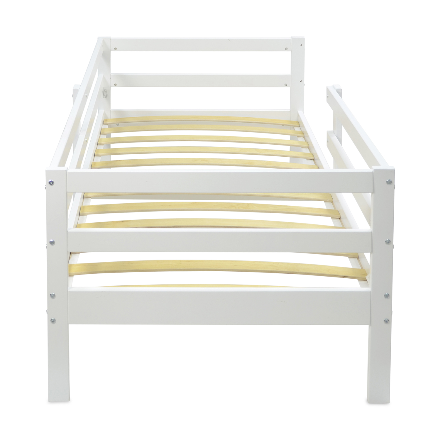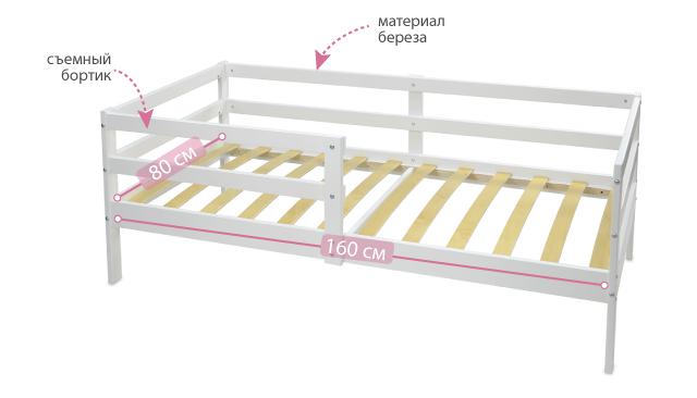 Спереди на кровати предусмотрен бортик, который можно снять, когда ребенок подрастет.
