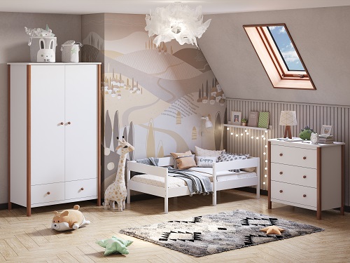 Дизайн кроватки прост и в то же время выглядит стильно и современно. Можно выбрать чисто белую кроватку, или с цветными элементами. Кроватка имеет эстетичный привлекательный вид и прекрасно сочетается с любым дизайном. Такую кроватку легко дополнить любыми аксессуарами.