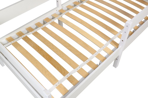 Основание кровати 3435 Simple представлено латофлексами, произведенными из березового шпона – натурального, долговечного, прочного и безопасного материала. Реечное ложе способствует правильному формированию позвоночника ребенка и обеспечивает хорошую циркуляцию воздуха, создавая тем самым комфортные условия для сна.