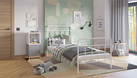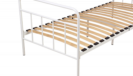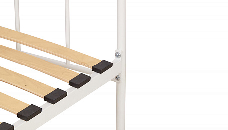 - Металлический каркас кровати покрывается порошковой краской, которая не создает вредных испарений и бережет поверхность от повреждений.