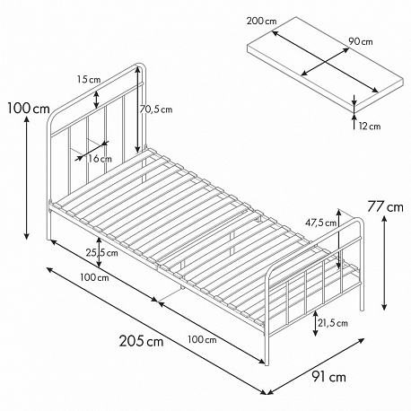 - Габариты изделия (ДхШхВ): 205х91х100 см.