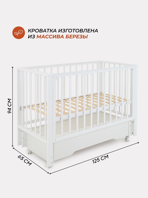 - кроватка изготовлена по европейской технологии из массива дерева и МДФ, а для ее покрытия использовалась безопасная для здоровья малыша краска на водной основе