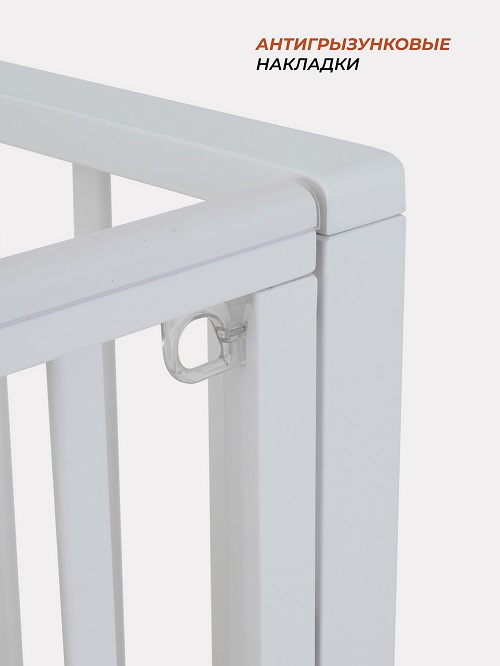 - верхние планки боковых стенок дополнены силиконовыми накладками, чтобы малыш не повредил десны (во время прорезывания зубов) и поверхность кроватки