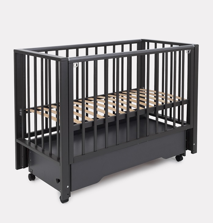 - съемную боковую стенку удобно опускать нажатием двух кнопок (курковой механизм). Также ее вовсе можно снять и, например, придвинуть к кровати родителей, чтобы обеспечить спокойный сон маме и малышу. Когда кроха вырастет, боковая стенка снимается - кровать превращается в уютный диванчик.