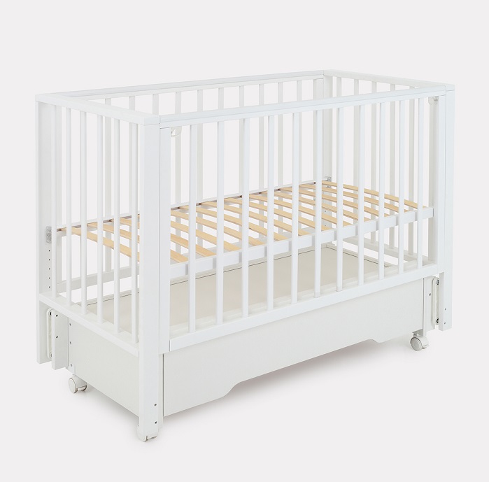- чтобы подросший ребенок мог самостоятельно залезть в кроватку и выбраться из нее, из боковой стенки можно вынуть две рейки