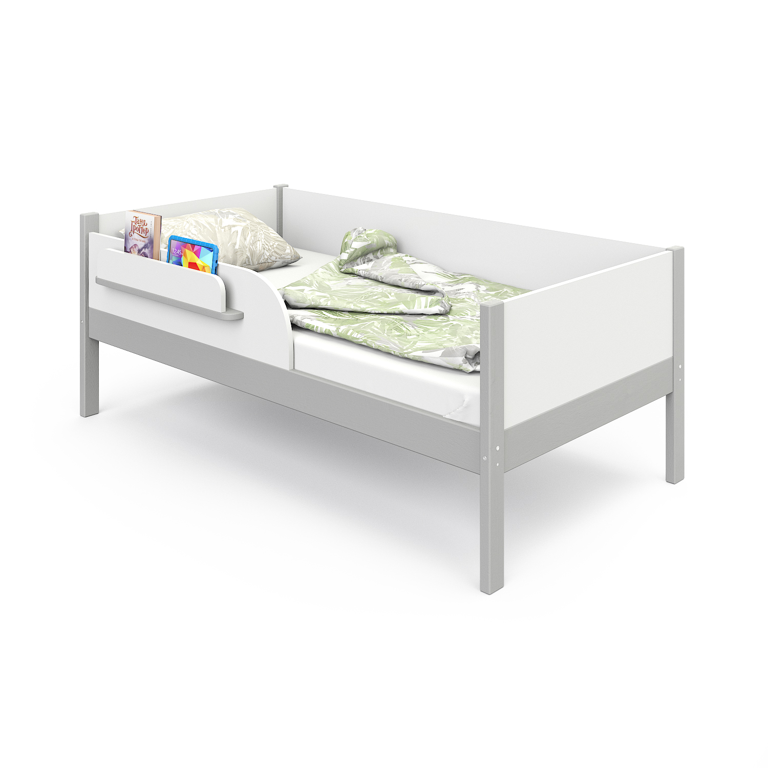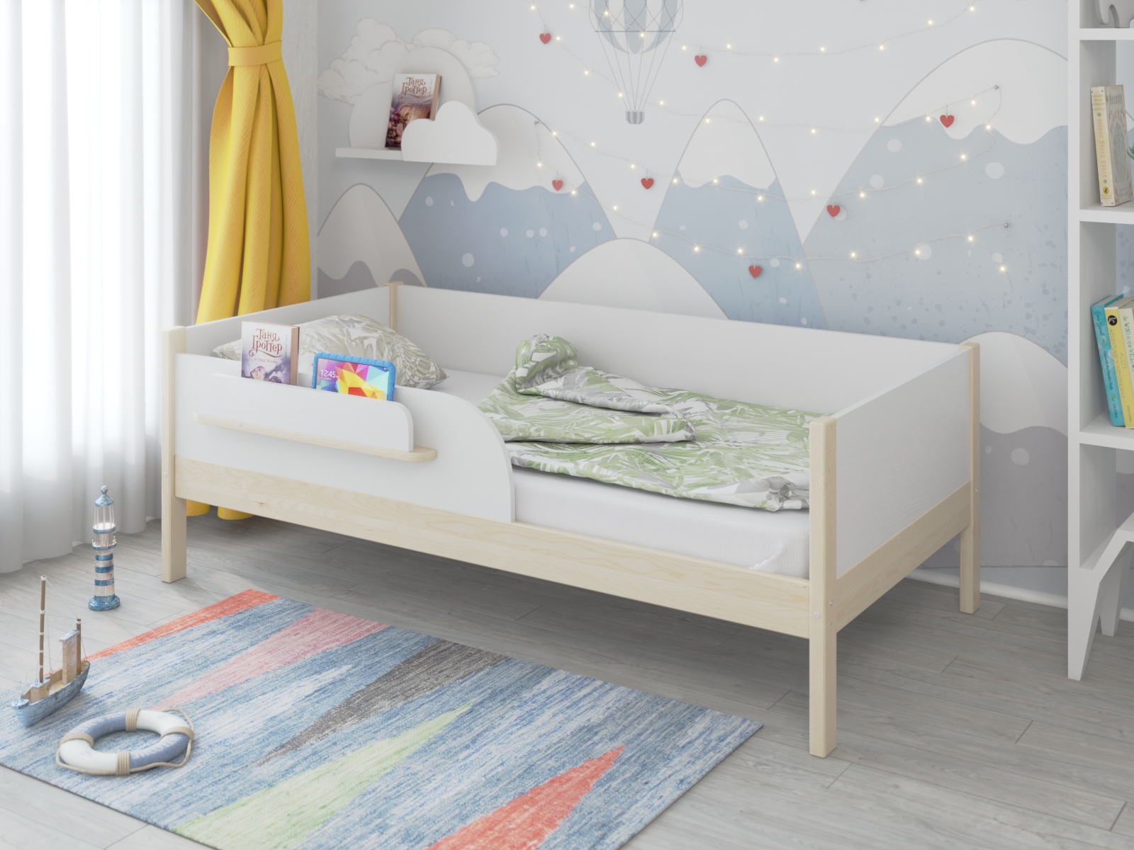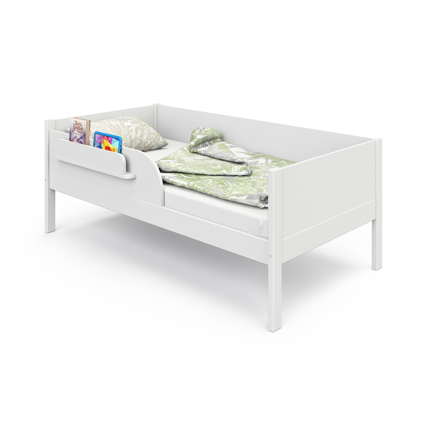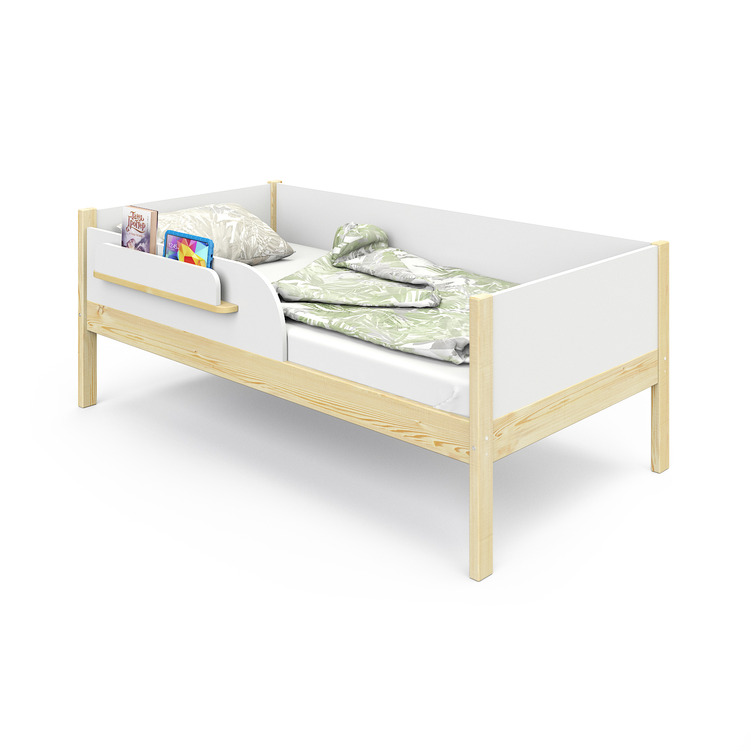 - Удобная полочка для книг и игрушек на бортике.