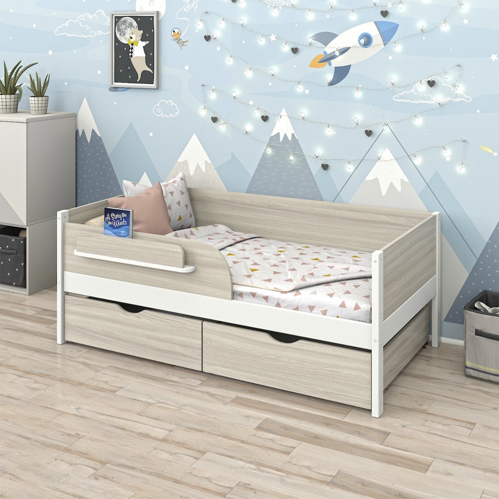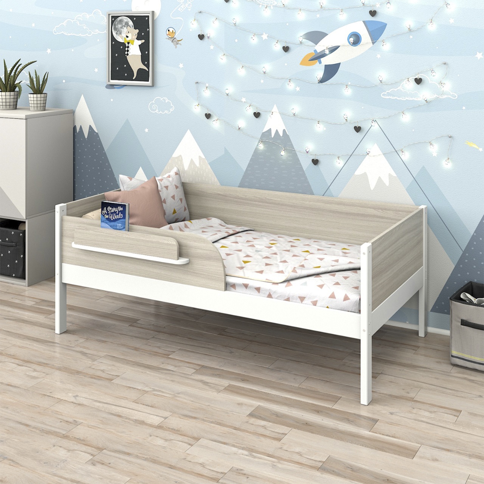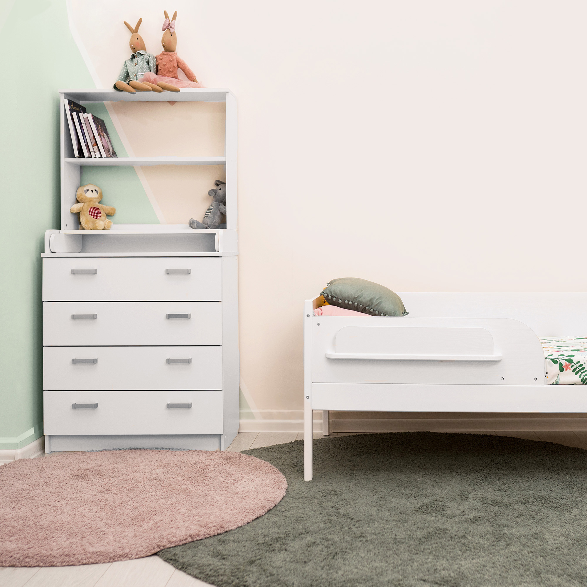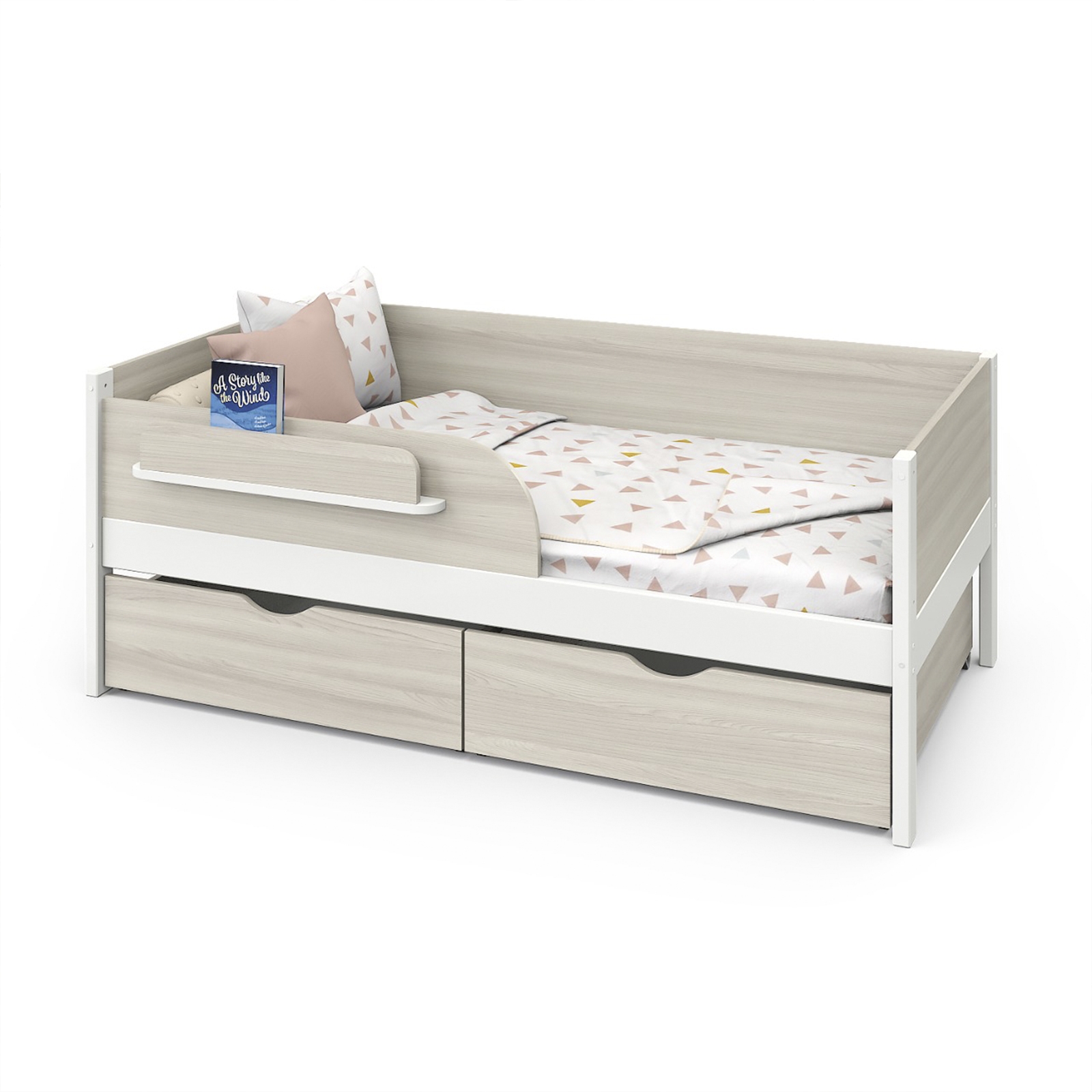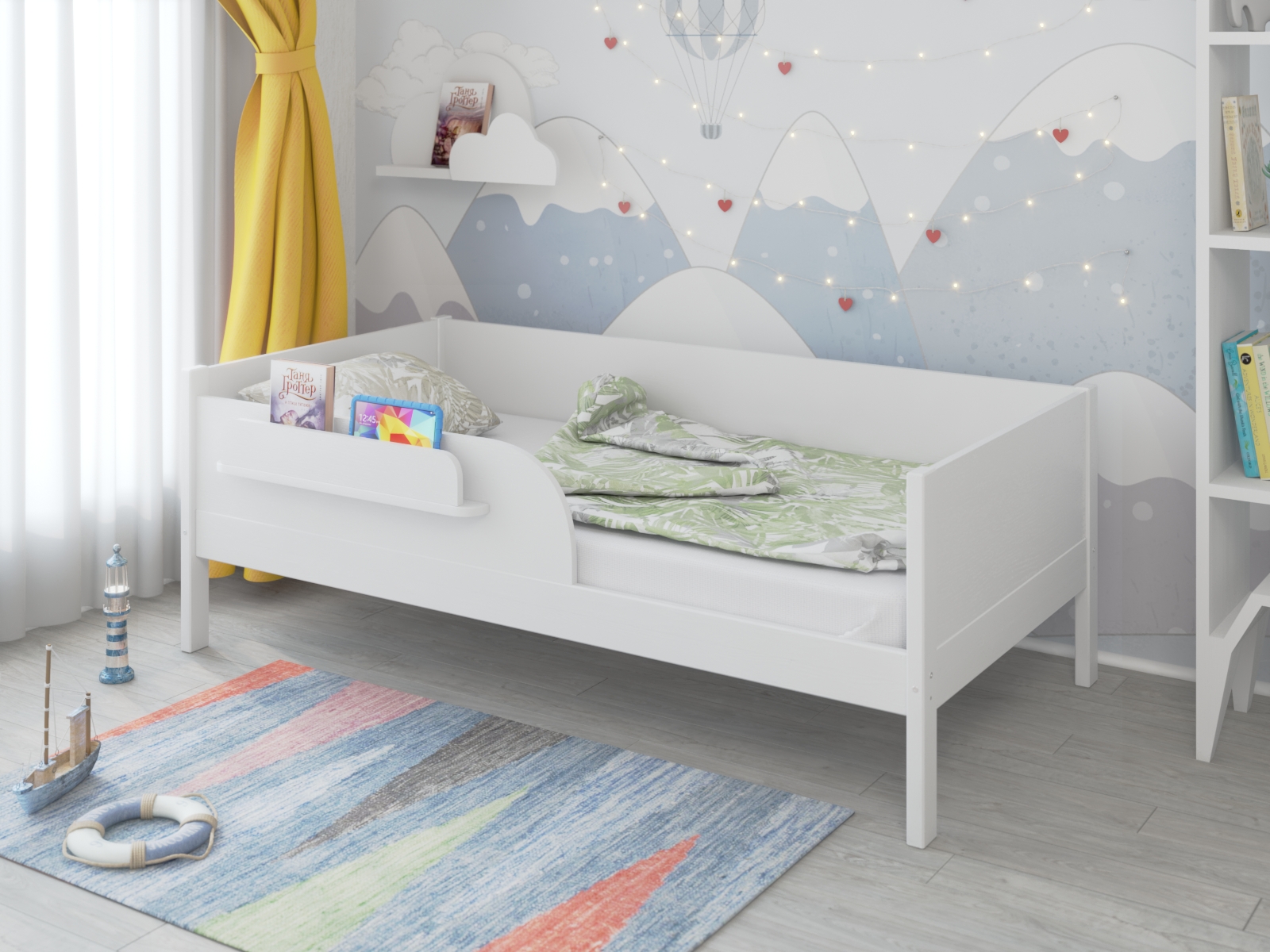 - Удобная полочка для книг и игрушек на бортике.