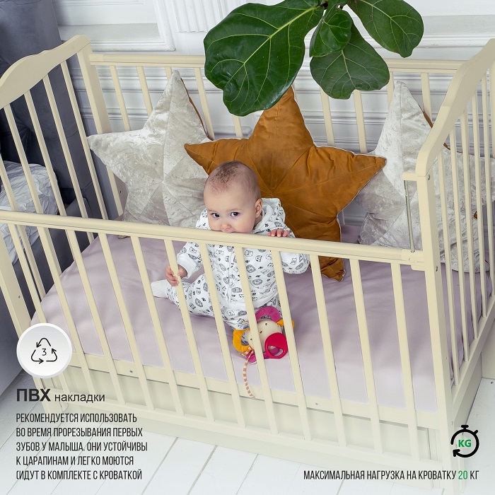 Кровать Sweet Baby Primi Sogni (Свит беби прими согни) - надежная, функциональная кроватка для ребенка с рождения до 3 лет. Кровать выполнена из надежного, экологического массива березы и покрыта безопасными красками и лаками. Для защиты детских зубов во время прорезывания на бортиках кроватки предусмотрены силиконовые накладки. Для удобства родителей высота спального ложа и передний бортик регулируются по высоте.