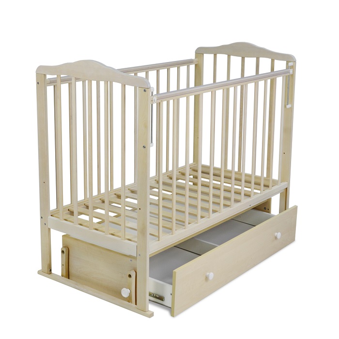 Большим преимуществом кроватки является универсальный маятник. Когда малыш только рождается, мы не можем угадать какой тип качания ему больше понравится, эта модель позволит попробовать оба вида качания, не докупая ни чего дополнительно. В зависимости от сборки (в инструкции будет указано) можно установить на кровать поперечный или продольный маятник. При необходимости маятник легко фиксируется, не давая кроватки качаться.