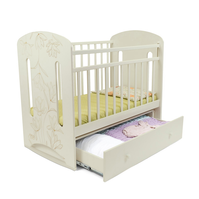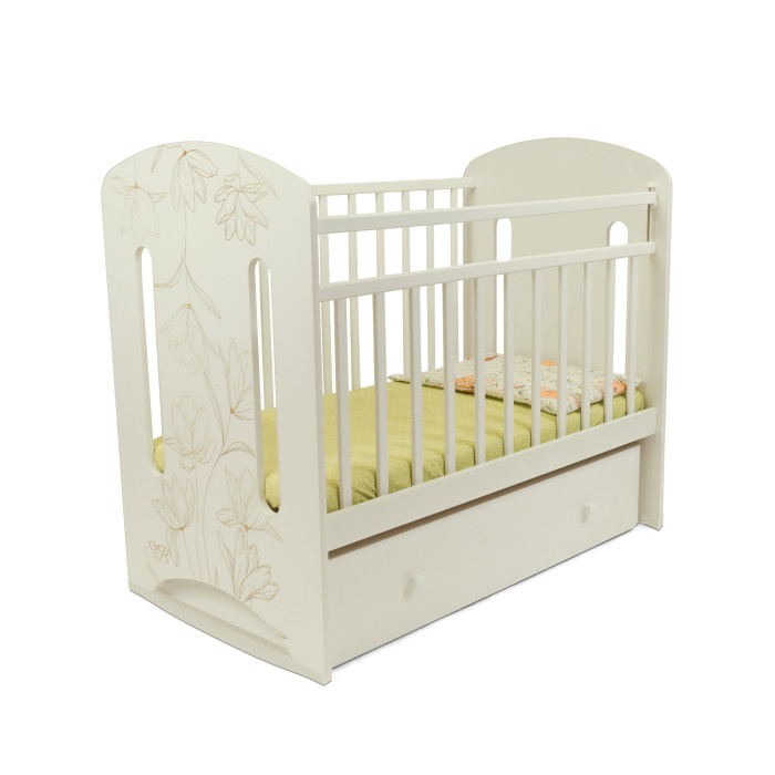 Кровать Sweet Baby Sofia колесо-качалка (Свит беби София) - изготовлена из качественного и прочного материала (массив березы и ЛДСП). Нежная кроватка с современным рисунком замечательно вписывается в современный интерьер комнаты. Закругленные углы и бортики обеспечат безопасность маленького ребенка во время.