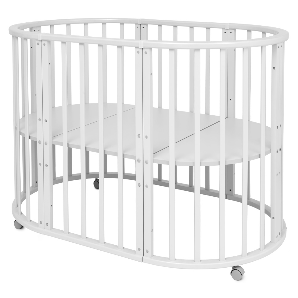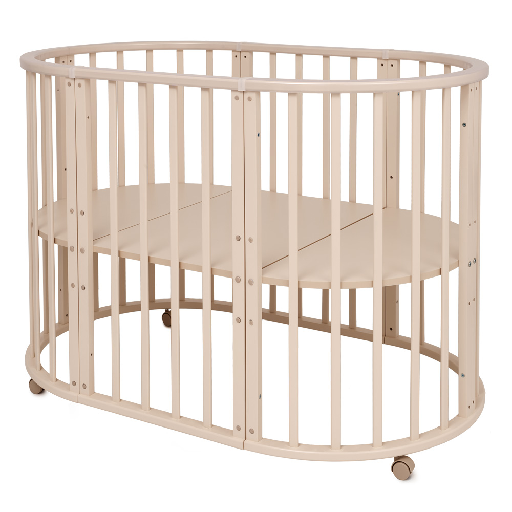 Кровать Топотушки Амалия 5 в 1 - это красивая и удобная кровать, отличающаяся высоким качеством и небольшой ценой. Кровать трансформируется с круглой модели в овальную, манеж, а в дальнейшем в два удобных кресла для игр и занятий. Стандартное спальное место позволит без труда подобрать любой матрасик к кроватки (в комплект не входит). Высота спального ложа регулируется, что позволит обеспечить ребенку безопасное нахождение в кроватке, а вам удобный доступ к малышу. Передний бортик в овальной кроватке снимается, что позволит использовать модель как приставную к взрослой кровати или как диванчик для уже подросшего ребенка. Для безопасности ребенка во время прорезывания зубов предусмотрены силиконовые накладки на верхние бортики кровати.