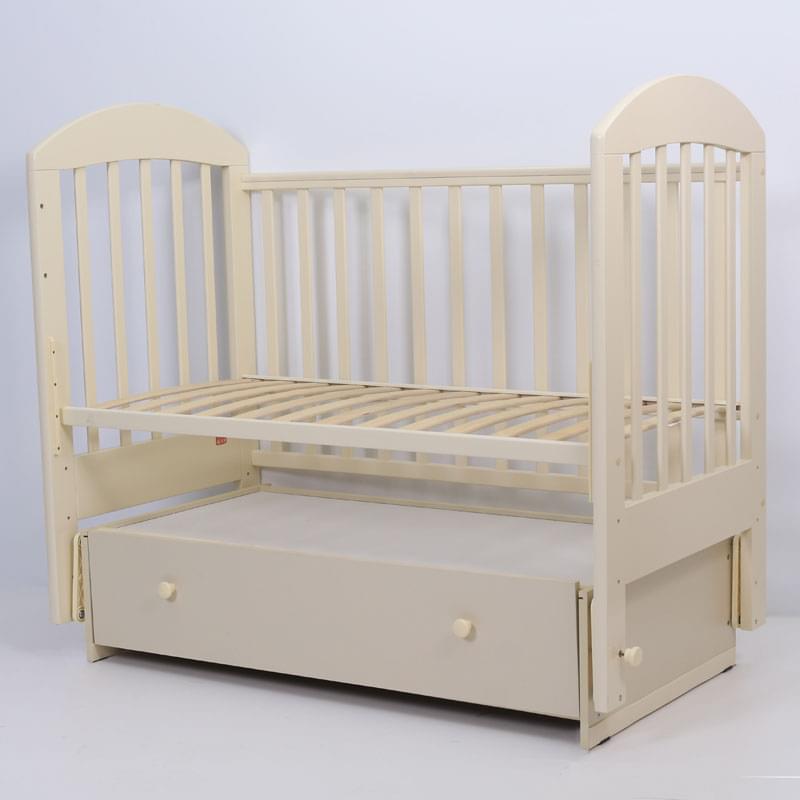 - чтобы было удобнее наклоняться к малышу, боковая стенка опускается нажатием двух кнопок (механизм курковой)