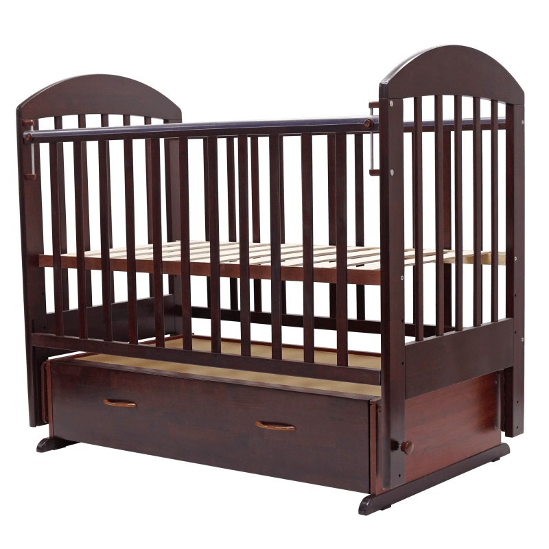 - кроватка выполнена из экологически чистого массива дерева, а для ее покрытия использовалась безопасная для здоровья краска на водной основе