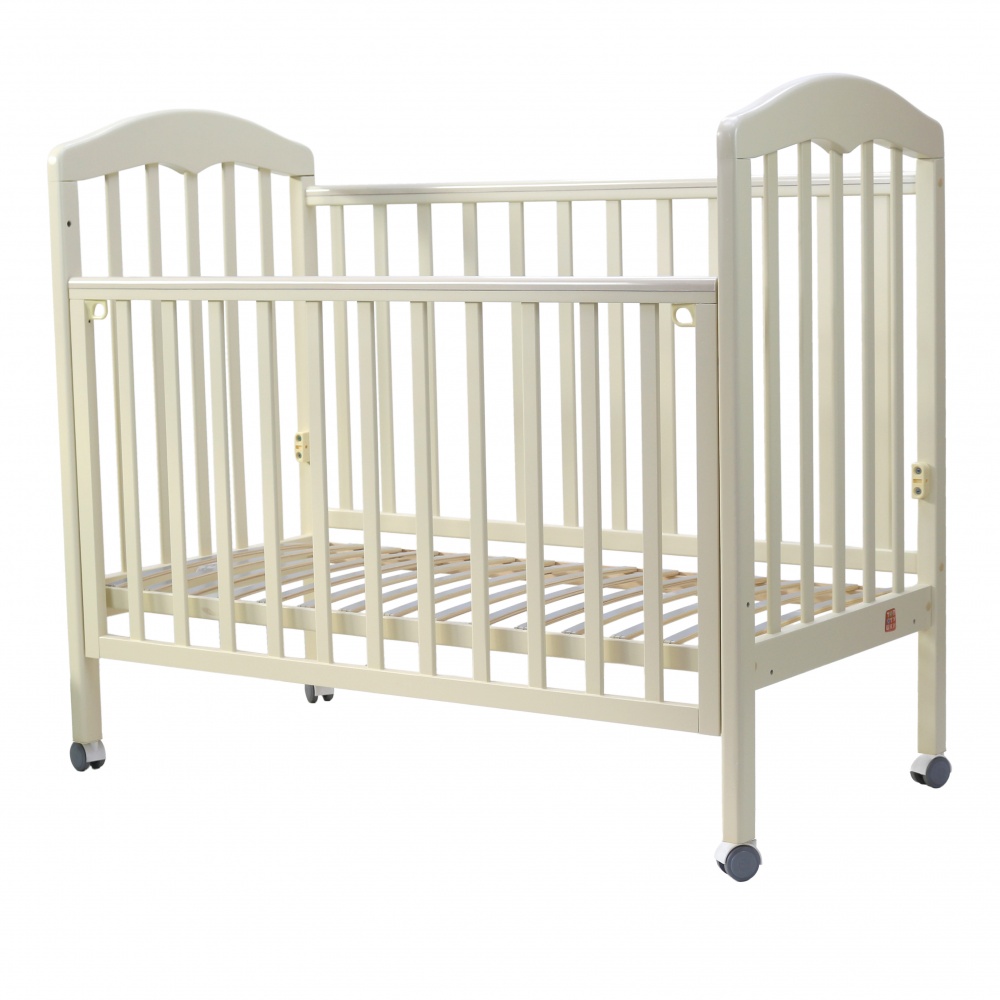 - съемную боковую стенку удобно опускать нажатием двух кнопок (курковой механизм). Также ее вовсе можно снять и, например, придвинуть к кровати родителей, чтобы обеспечить спокойный сон маме и малышу. Когда кроха вырастет, боковая стенка снимается - кровать превращается в уютный диванчик