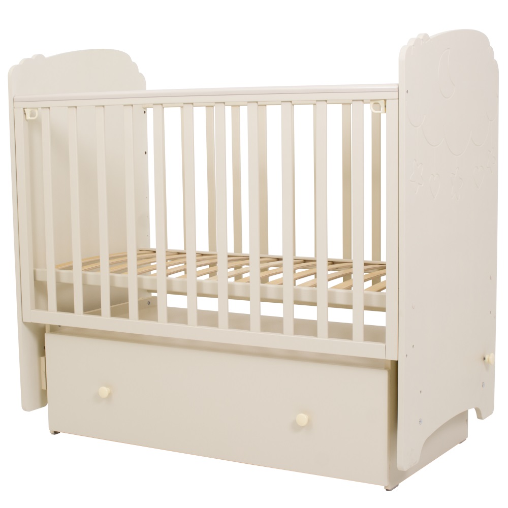 - так же верхняя часть боковин выполнена в форме облака, что выгодно отличает кроватку от множества подобных изделий