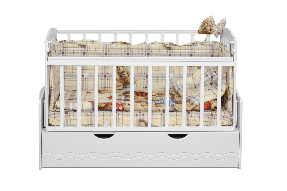Стандартный размер спального места 120*60 см., позволит подобрать любой классический матрас. Так же не будет проблем с покупкой детского постельного белья и бортиков.