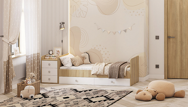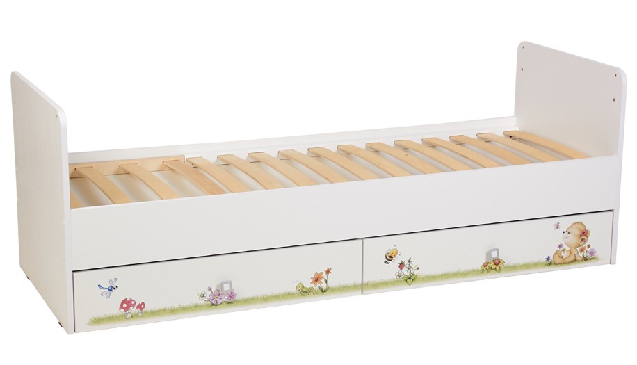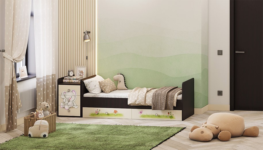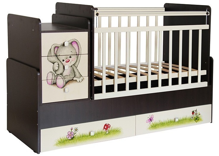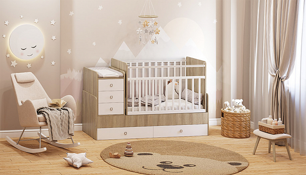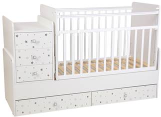 Кровать - трансформер Фея 1100 - детская кровать с возможностью расширения спального ложа до 170 см. Благодаря тому, что спальное место увеличивается, кровать можно использовать с рождения ребенка до 16 лет. Кровать состоит из трех модулей: кроватки для малышей с маятником поперечного качания 120х60 см, практичный комод с ящиками и подростковая кровать 170х60 см. Такая кроватка аккуратно впишется в любую комнату и будет смотреться очень аккуратно и стильно. Под кроваткой размещены два вместительных ящика для постельных принадлежностей. На верхней части комода предусмотрены два высоких бортика. В сочетании с пеленальным матрасиком (приобретается отдельно) получится удобное место для пеленания и переодевания ребенка.