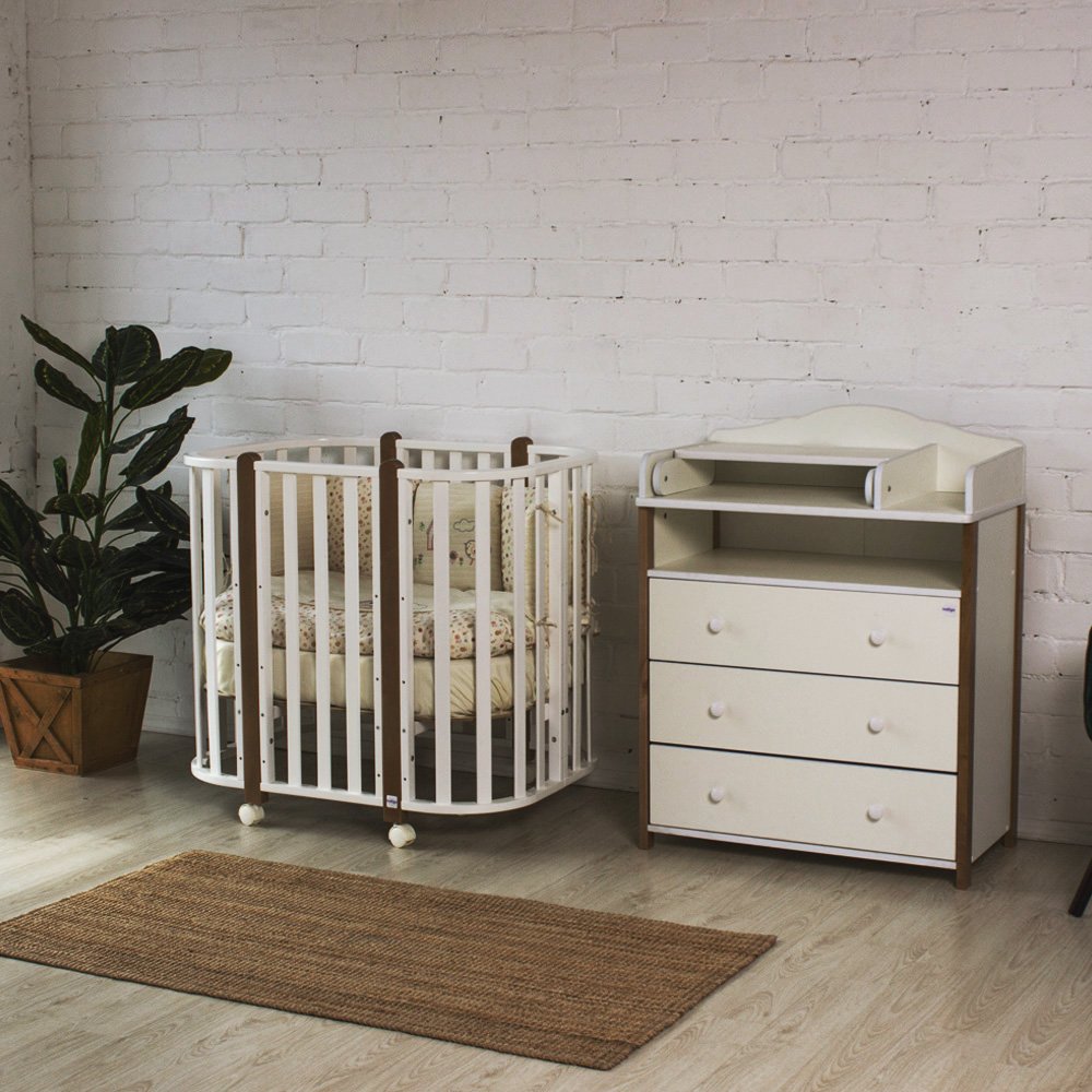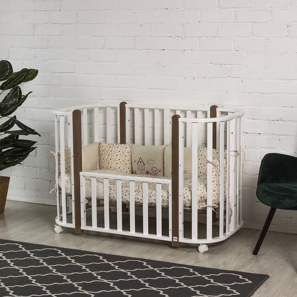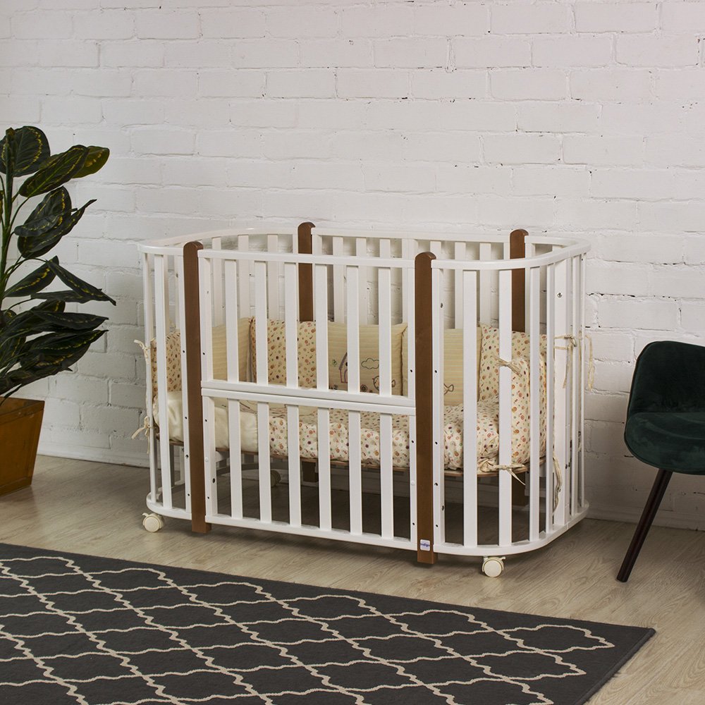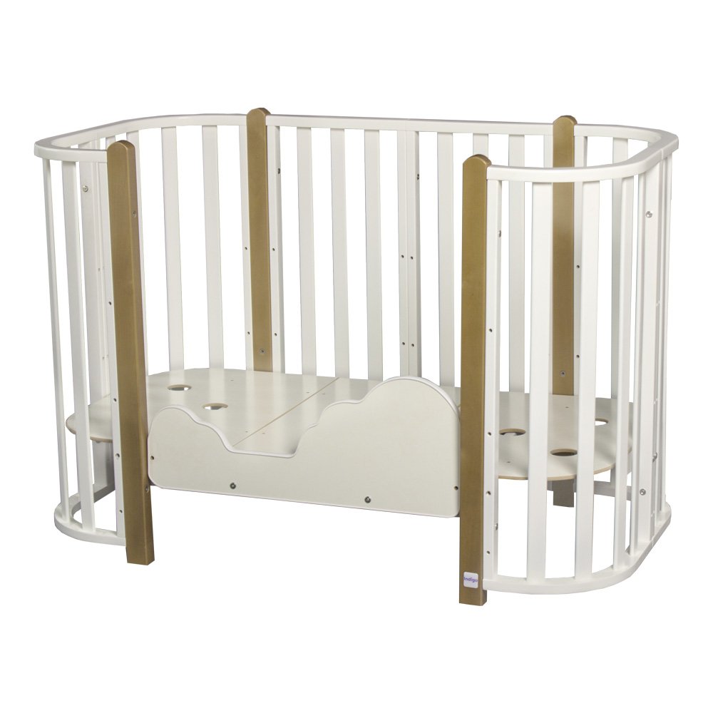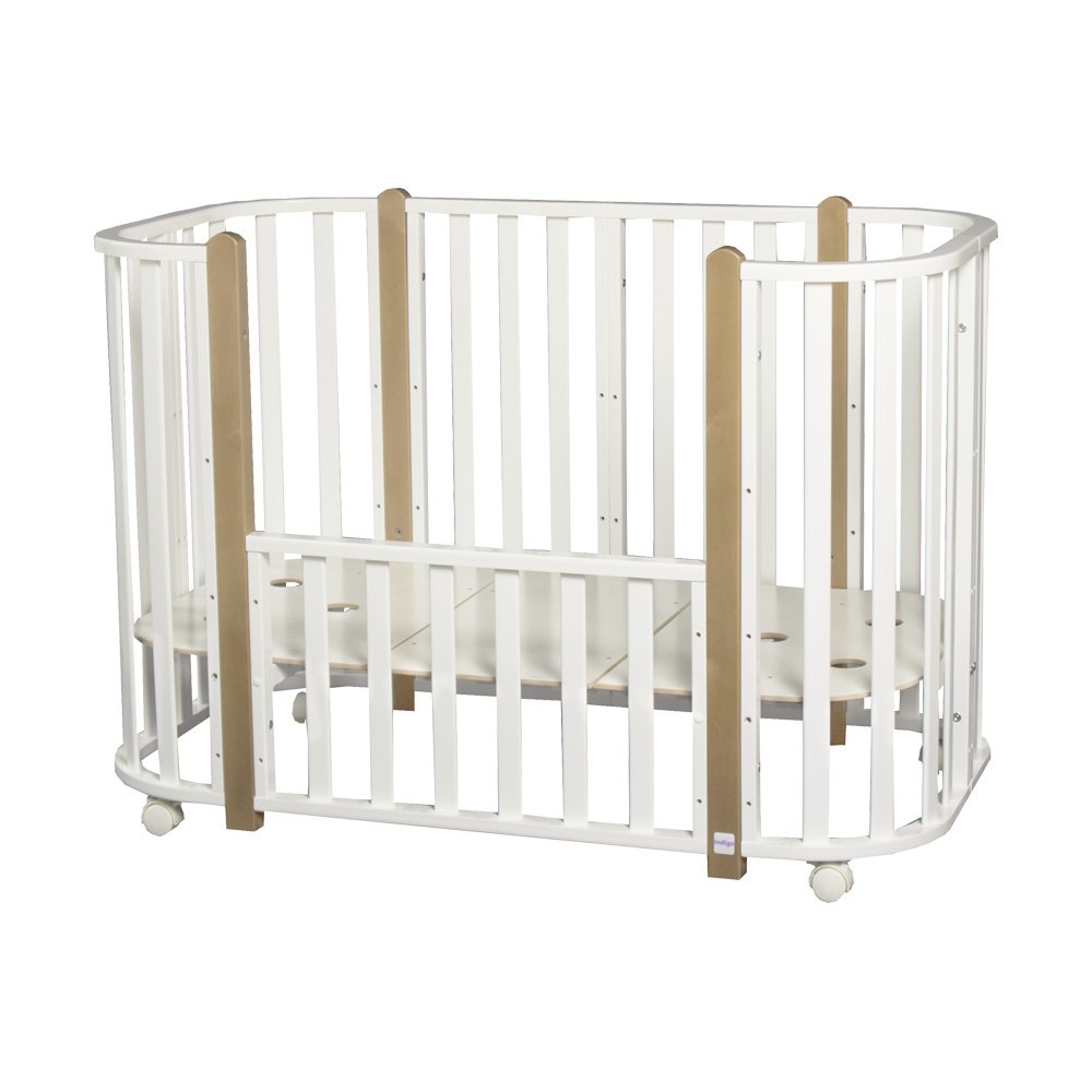 Для удобства родителей кроватка имеет 3 положения дна по высоте. Передний бортик модно снять, чтобы превратить модель в диван или прикроватный вариант кровати.