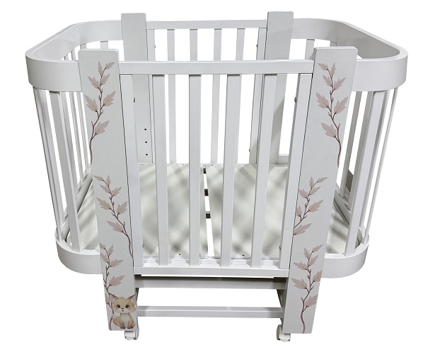 Кроватка не имеет острых углов, все регулировки осуществляются просто и удобно.