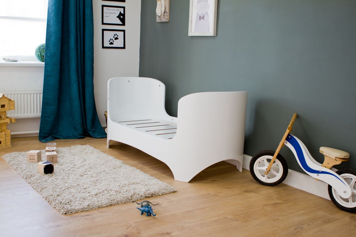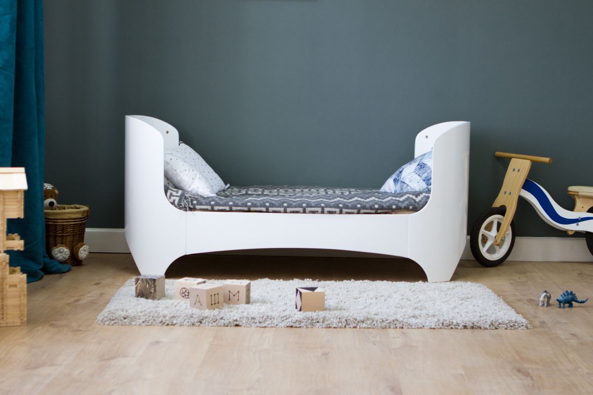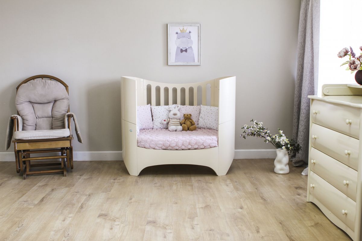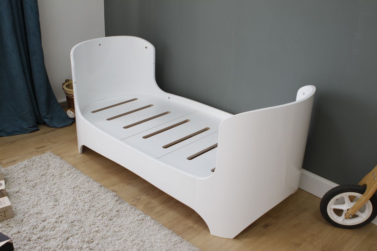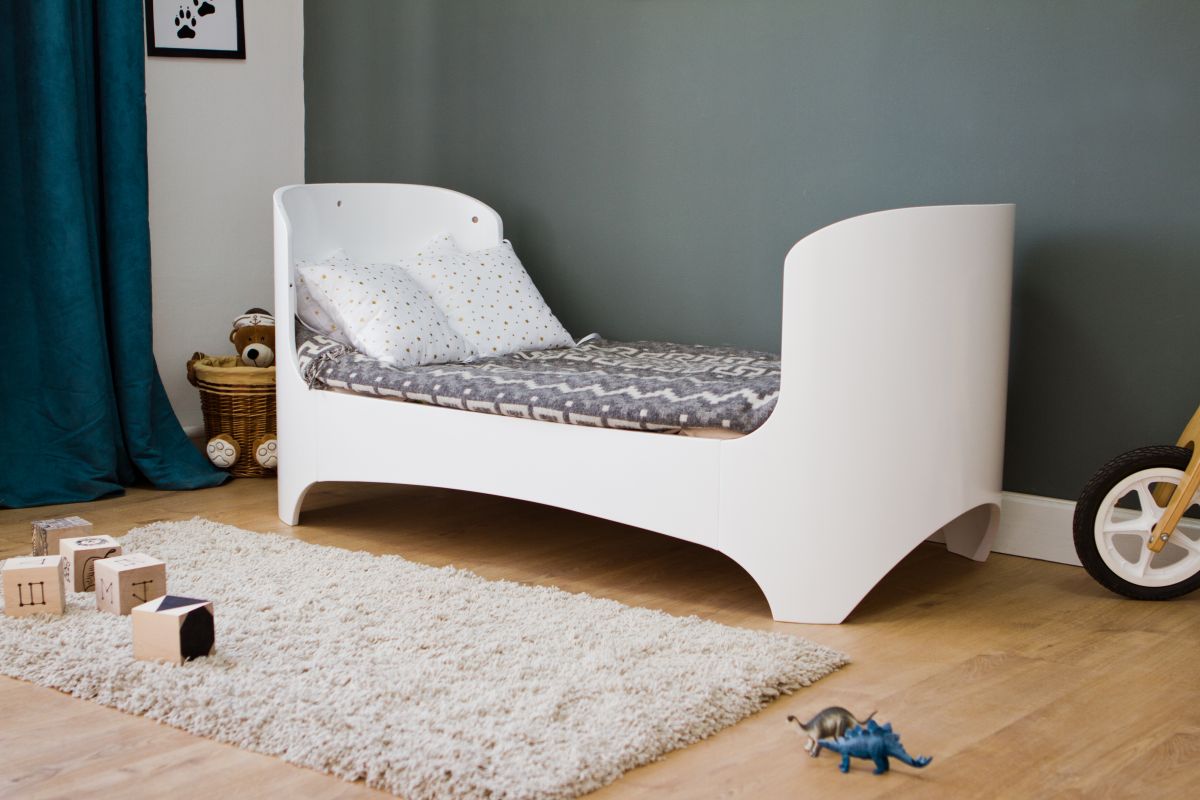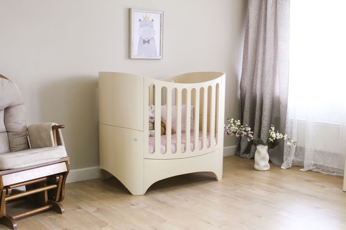 Передний бортик кроватки снимается позволяя использовать кровать как диванчик.
