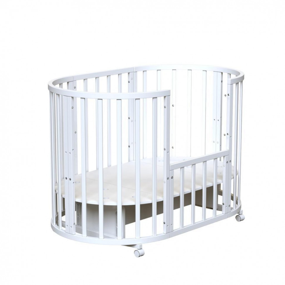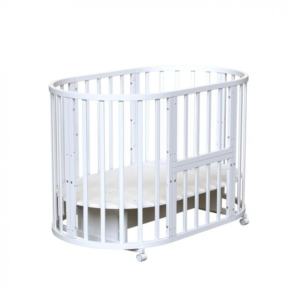Кровать Malika VITA 9 в 1 (малика вита) - универсальная кроватка с различными видами трансформации для ребенка с рождения до 3 лет. В зависимости от возраста ребенка кровать можно собрать в уютную колыбельку, овальную кровать, диванчик, стол для пеленания, парту и 2 кресла. Кровать имеет закругленную форму без острых углов, не занимает много места и прекрасно впишется в любой интерьер. Качественные материалы кроватки гарантируют ее долговечность и надежность. Универсальный маятник позволит качать кроватку вдоль или поперек в зависимости от пожеланий родителей и места в комнате.