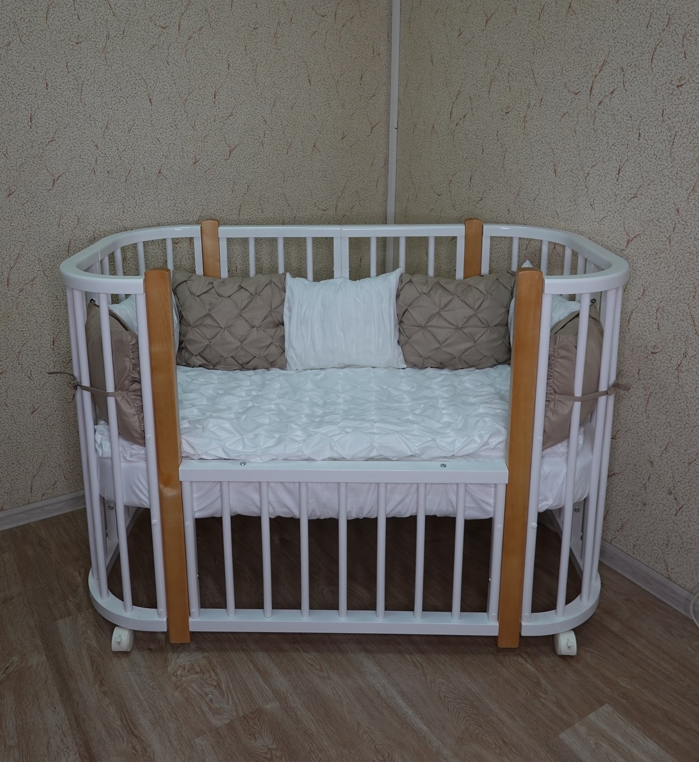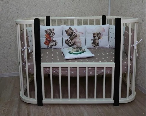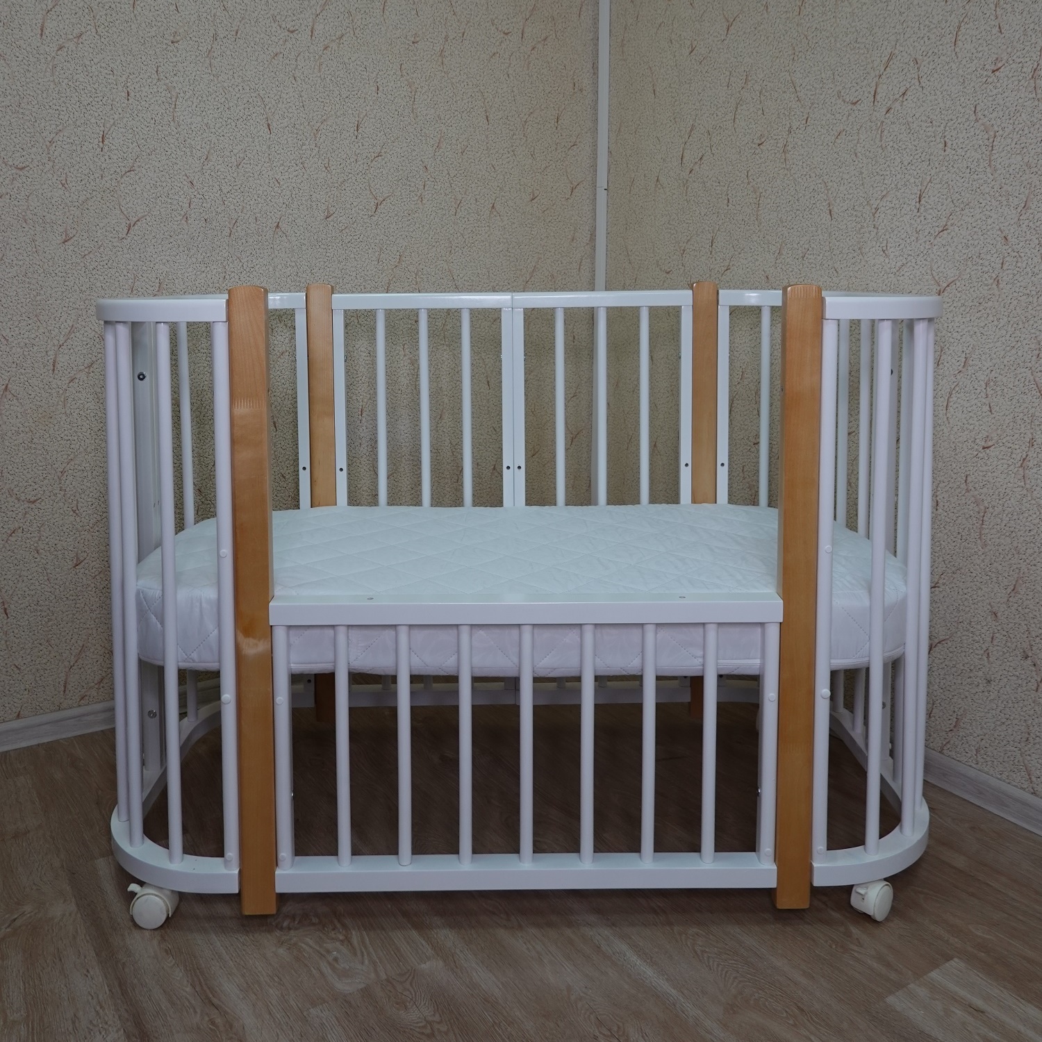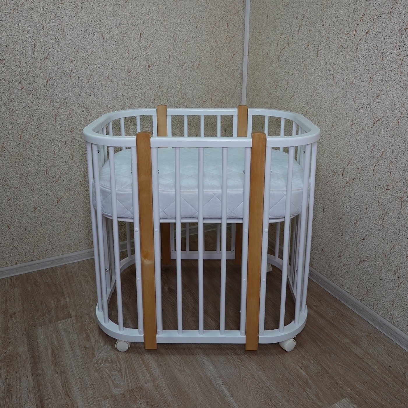 - кроватку можно использовать без колёс, она будет устойчива на буковых стойках