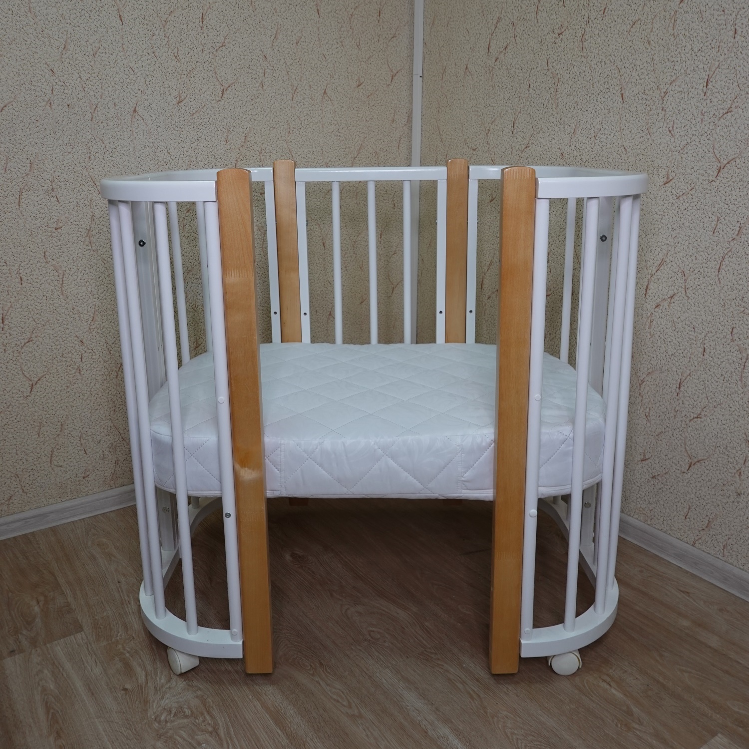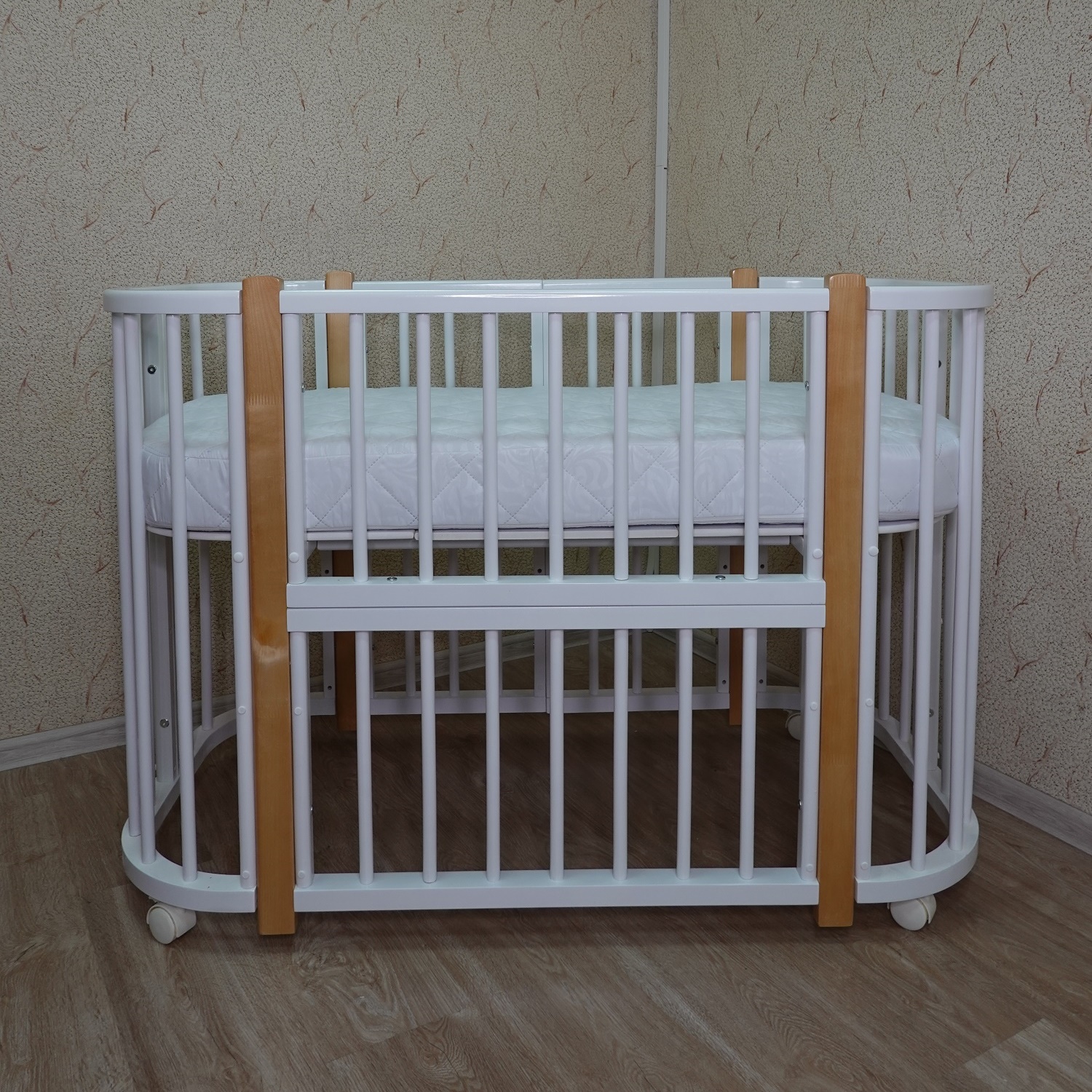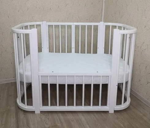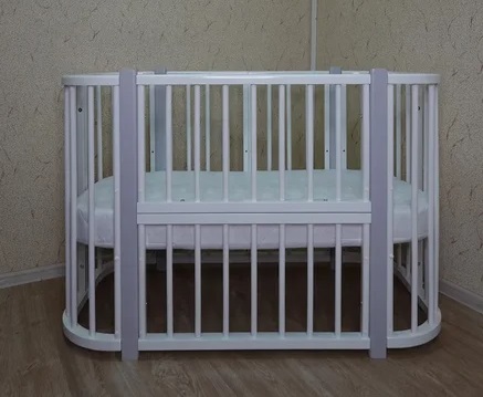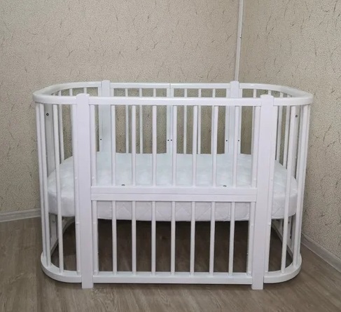 Кровать трансформер Mika MARITA 5 в 1 (Мика Марита) - cтильная, лаконичная кроватка из березы для ребенка с рождения до 4 лет. Ее функционал удобен, а формы и функционал настолько удобны и приятны, что ни кого не оставят равнодушным. Без острых углов, c безопасным расстоянием между рейками, немецкой эмалью на водной основе, без посторонних запахов - это безопасная и высококачественная кроватка, которая прослужит вам долго. Модель трансформер будет меняться по мере роста ребенка, обеспечивая комфортное спальное место. Для новорожденного ребенка кроватка станет уютной колыбелью с регулируемой высотой спального ложа. В дальнейшем кровать станет большего размера и уже превратится в овальную кроватку. В любой трансформации можно снять передний бортик и использовать кровать как прикроватную к взрослой или как диванчик.