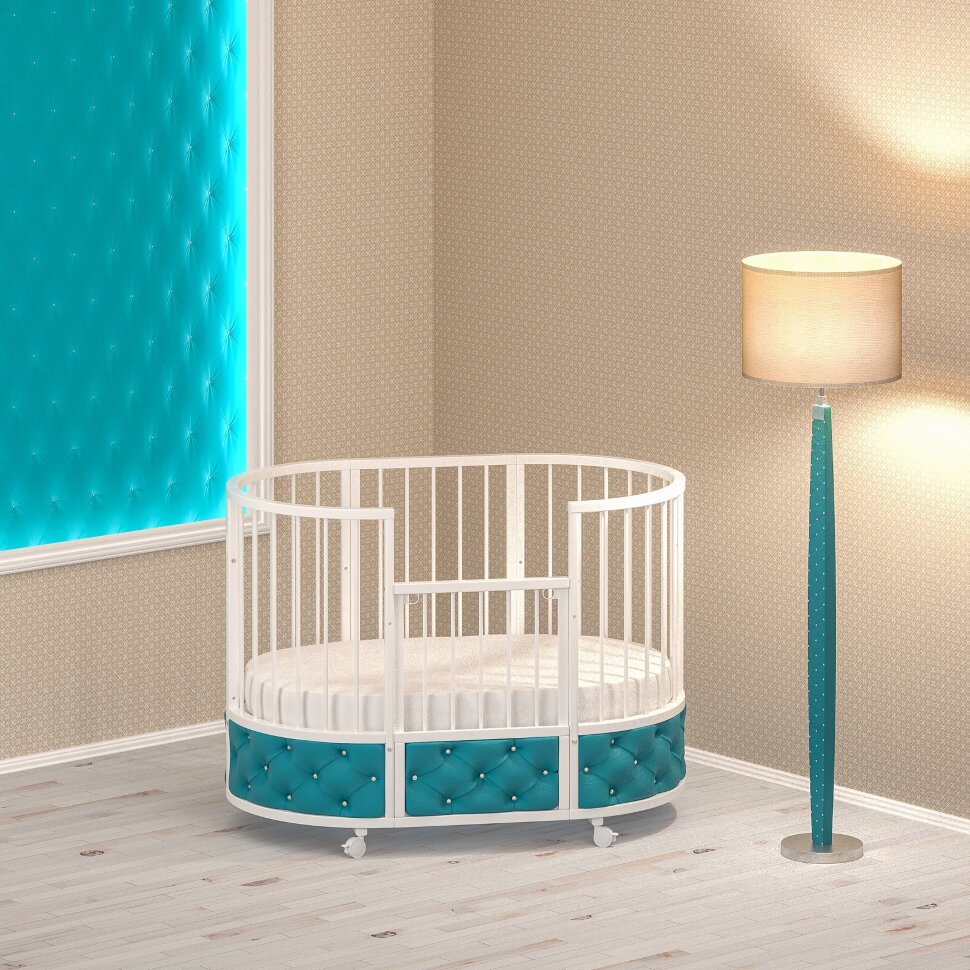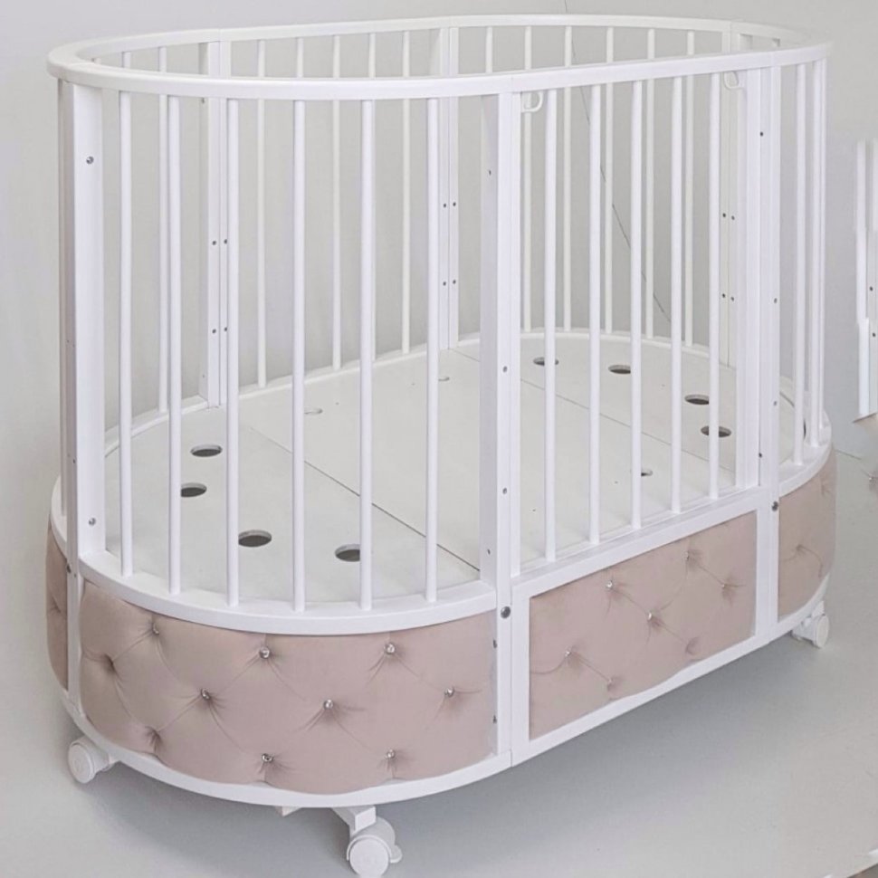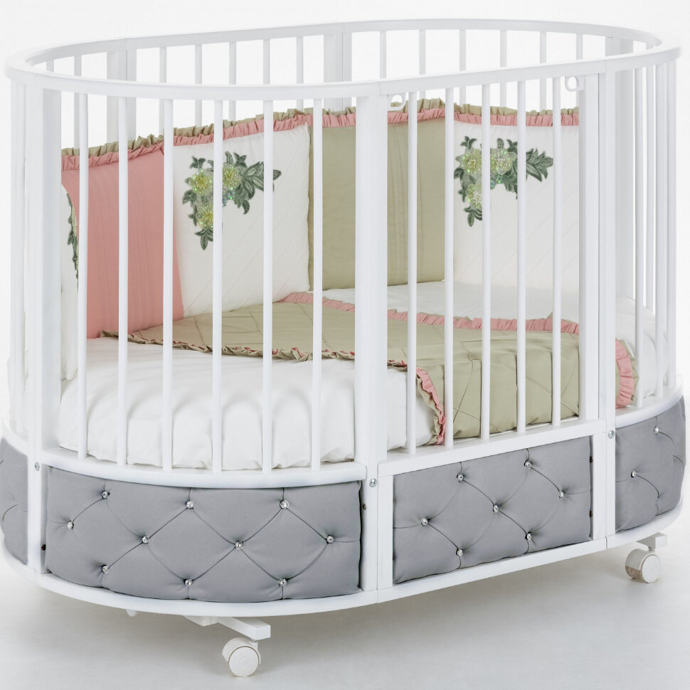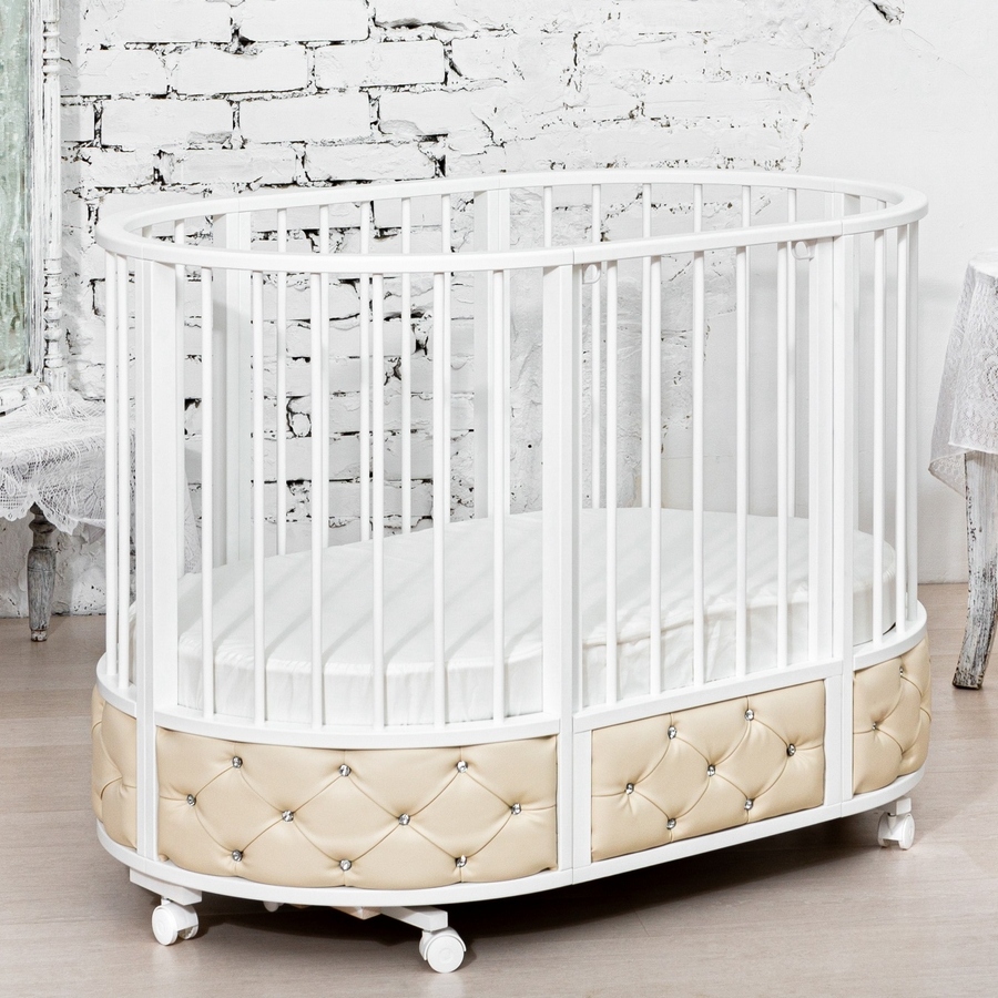 Кровать относится к модели трансформеру. По мере роста ребенка кроватку можно использовать как люльку (круглая кроватка), овальную кровать, диван и манеж. Так же в комплекте есть маятник, который поможет успокоить и уложить спать ребенка без маминых рук, а так же продлить сон ребенка в кроватке. Маятник имеет надежный фиксатор, если качание на данный момент не актуально.