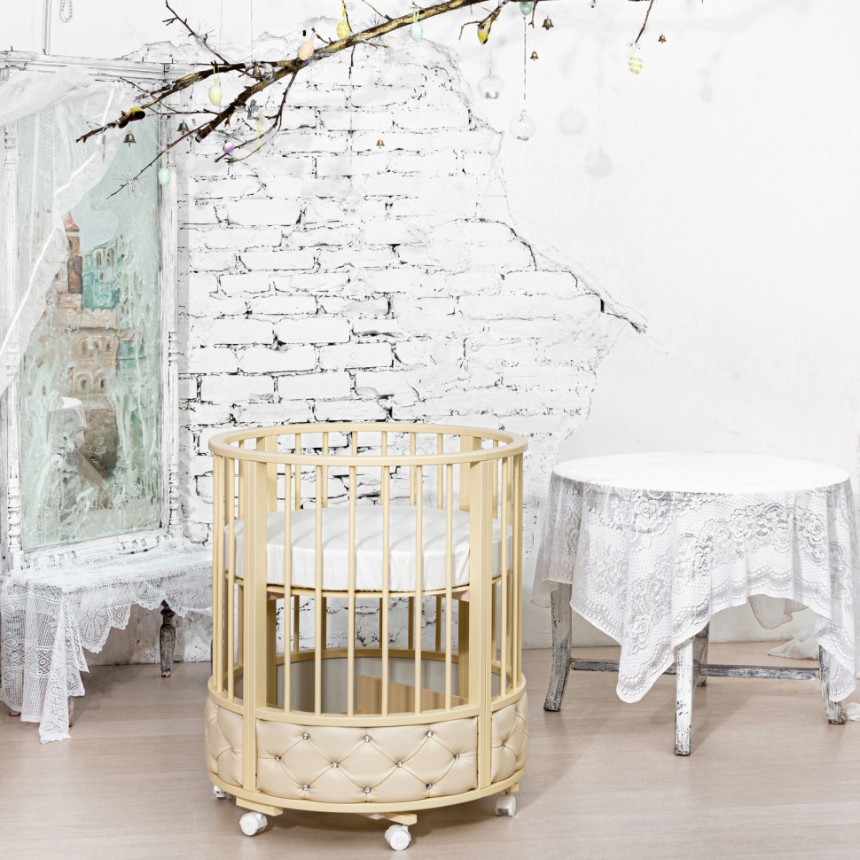 - круглая кроватка (ДхШхВ): 83x83x96 см, спальное место 75х75 см